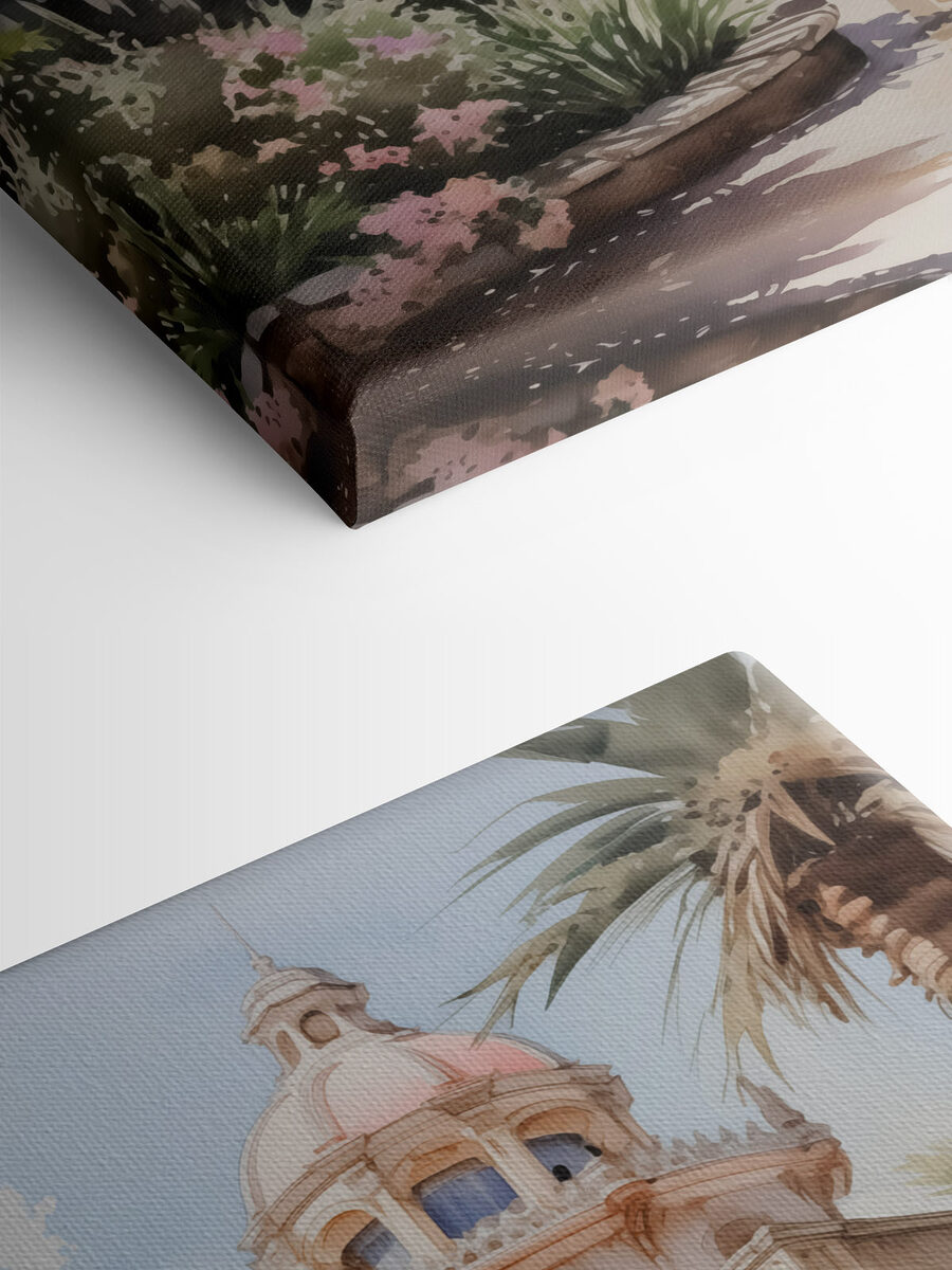 Verwandeln Sie Ihren Raum mit diesem atemberaubenden Aquarell-Leinwanddruck, der ein charmantes Gebäude mit einem Turm zeigt, umgeben von üppigem Grün. Stellen Sie sich vor, wie dieses Bild Ihre Gäste in seinen Bann zieht und sie zu Gesprächen über Reisen, Architektur oder das eine Mal, als Sie versehentlich in einen botanischen Garten geraten sind, anregt. Die sanften Farben schaffen eine heitere Atmosphäre, die sich perfekt für Wohnzimmer oder gemütliche Ecken eignet. Ob Sie nun einen Kaffee trinken oder sich in ein gutes Buch vertiefen, dieses Kunstwerk lädt zu einem Moment der friedlichen Reflexion ein. Eine wunderbare Fluchtmöglichkeit direkt in Ihrem eigenen Zuhause!