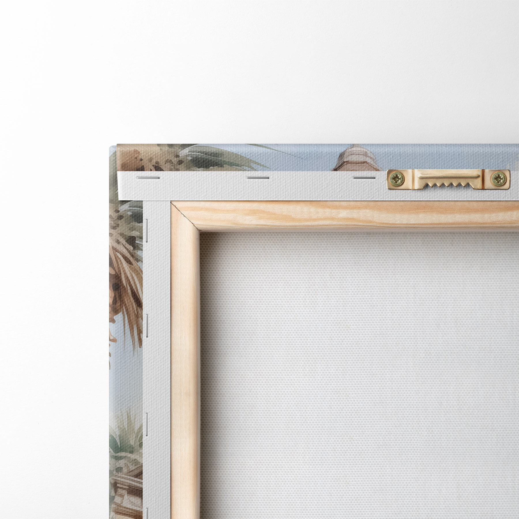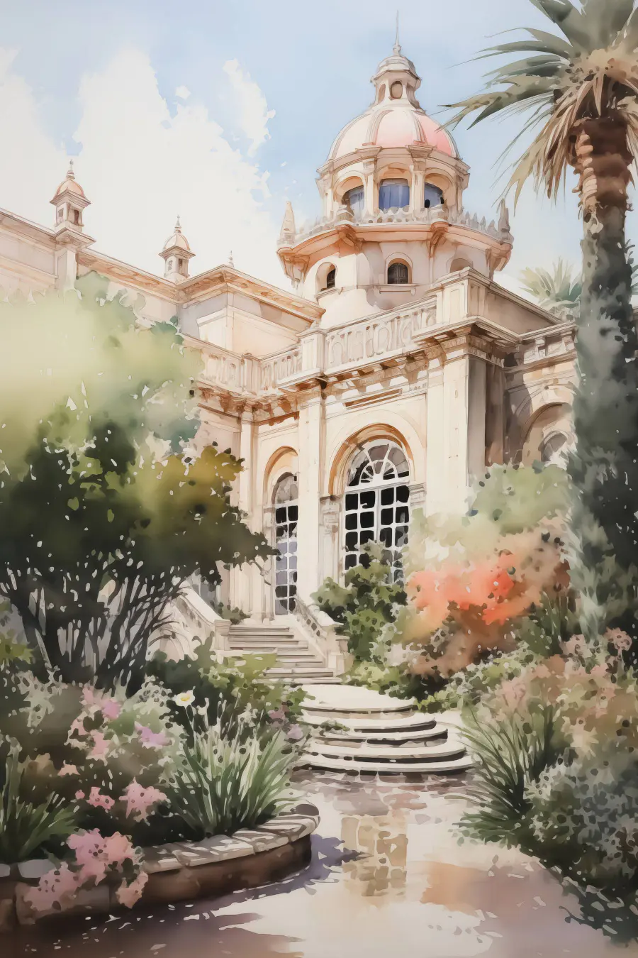 Verwandeln Sie Ihren Raum mit diesem atemberaubenden Aquarell-Leinwanddruck, der ein charmantes Gebäude mit einem Turm zeigt, umgeben von üppigem Grün. Stellen Sie sich vor, wie dieses Bild Ihre Gäste in seinen Bann zieht und sie zu Gesprächen über Reisen, Architektur oder das eine Mal, als Sie versehentlich in einen botanischen Garten geraten sind, anregt. Die sanften Farben schaffen eine heitere Atmosphäre, die sich perfekt für Wohnzimmer oder gemütliche Ecken eignet. Ob Sie nun einen Kaffee trinken oder sich in ein gutes Buch vertiefen, dieses Kunstwerk lädt zu einem Moment der friedlichen Reflexion ein. Eine wunderbare Fluchtmöglichkeit direkt in Ihrem eigenen Zuhause!