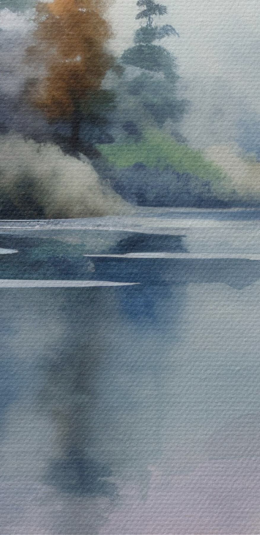 Stellen Sie sich dieses schöne Aquarell vor, das Ihren Raum erhellt – ein ruhiger See, umgeben von melodramatischen Bäumen und zarten Blumen. Es strahlt Frieden und Ruhe aus und lässt jeden Blick wie eine kleine Flucht in die Natur erscheinen. Stellen Sie sich vor, Sie laden Freunde ein, und während sie am Tee nippen, können sie nicht anders, als diese Schönheit zu bewundern und vielleicht sogar zu fragen, woher Sie sie haben. Es ist, als hätten Sie ein kleines Stück Wildnis direkt in Ihrem Wohnzimmer, das im Nachmittagslicht sanft leuchtet. Perfekt für diese gemütlichen Ecken oder um Gespräche anzuregen. Wer würde das nicht wollen?