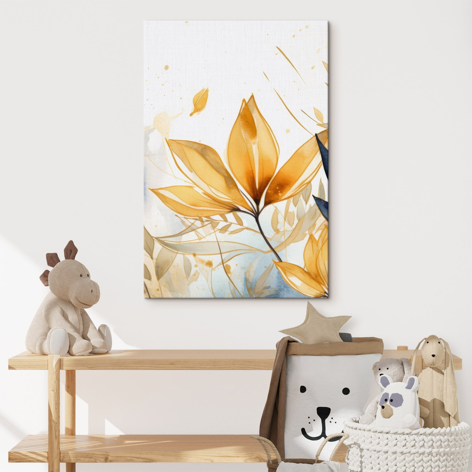 Verwandeln Sie Ihren Raum mit “Delicate Hues of Nature’s Beauty”. Dieser atemberaubende Leinwanddruck fängt die weiche Eleganz von Blättern ein, die in sanften Aquarellfarben tanzen. Stellen Sie sich das Bild über Ihrem Sofa vor, während Sie an Ihrem Kaffee nippen und die warmen, sonnigen Gelbtöne und ruhigen Blautöne betrachten. Es ist, als ob Sie ein kleines Stück Natur in Ihr Zuhause einladen würden. Ihre Freunde könnten Sie fragen, ob Sie einen geheimen Garten haben! Dieses Stück ist perfekt, um einen Hauch von Gelassenheit zu vermitteln und lädt zum Träumen ein. Lassen Sie sich jedes Mal, wenn Sie vorbeigehen, von ihm inspirieren!