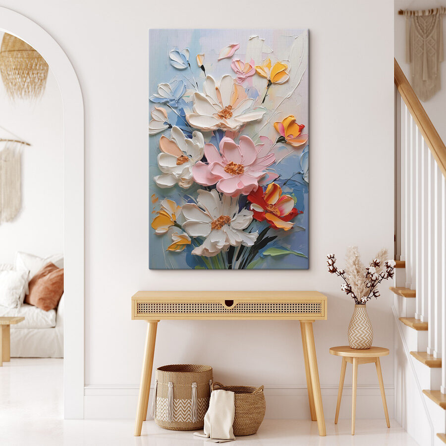 Verwandeln Sie jede Wand in einen Hauch von frischer Luft mit diesem atemberaubenden Leinwanddruck mit einem lebendigen Blumenbouquet. Stellen Sie sich vor, wie Sie in einer gemütlichen Ecke sitzen, umgeben von diesen lebendigen Blüten, die über die Leinwand zu tanzen scheinen und Ihrem Raum einen Hauch von natürlichem Charme verleihen. Die leuchtenden Farben heben sofort die Stimmung in jedem Raum. Ob im Wohnzimmer, im Schlafzimmer oder sogar im Flur, es weckt das ganze Jahr über Frühlingsgefühle. Perfekt zum Tagträumen oder um sich bei einem Kaffee in Gedanken zu verlieren – wer würde das nicht wollen? Bringen Sie das Lächeln zum Vorschein!