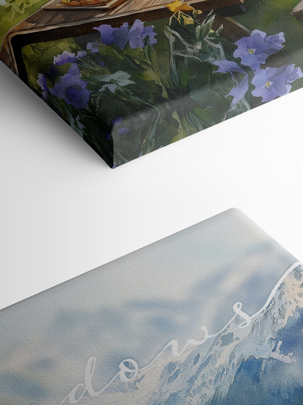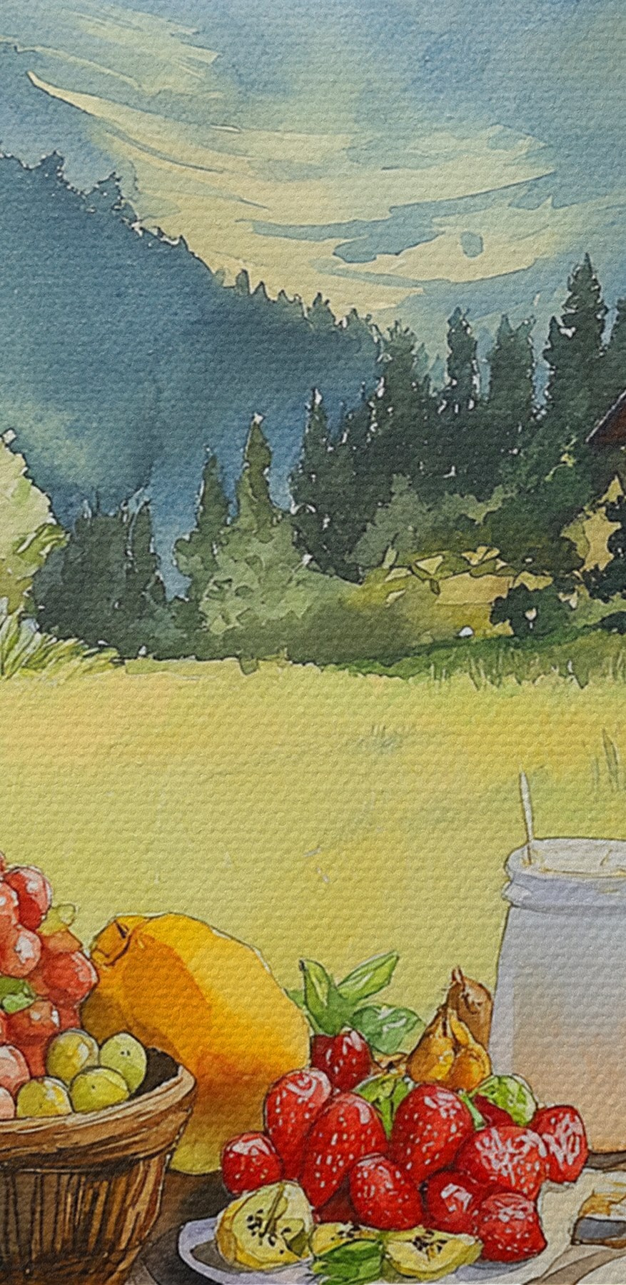 Stellen Sie sich einen sonnigen Tag vor, ein frisches Essen auf einem Feld voller Wildblumen – dieser Leinwanddruck fängt diese Stimmung perfekt ein. Der charmante Holztisch ist mit bunten Früchten, Sandwiches und Getränken gedeckt und wirkt wie eine Einladung, Freunde zu einem entspannten Nachmittagsschmaus zu versammeln. Der Hintergrund aus majestätischen Bergen bringt einen Hauch von Abenteuer in den Raum. Sie lässt jeden Raum sofort wärmer erscheinen und weckt Tagträume von Picknicks und Lachen. Es riecht fast wie frischer Kaffee, nicht wahr? Es ist ein Stück, das Sie jedes Mal zum Schmunzeln bringt, wenn Sie es betrachten, und das Sie an einfache Freuden erinnert. Dieses Bild an der Wand zu haben, ist wie ein kleines Stückchen Glück genau dort, wo man es braucht!