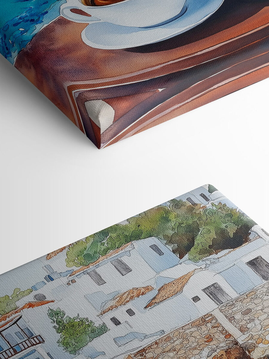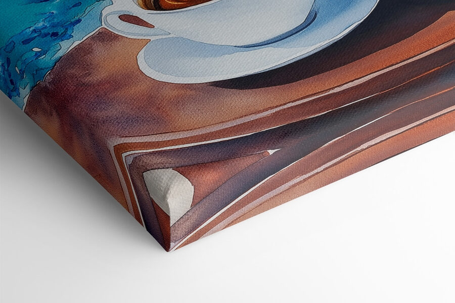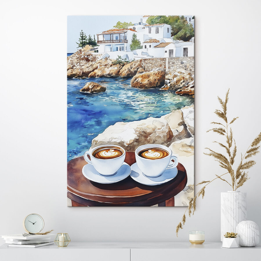 Stellen Sie sich vor, Sie machen es sich in Ihrer Lieblingsecke gemütlich und blicken auf einen lebendigen Leinwanddruck mit zwei dampfenden Tassen Kaffee, die es sich auf einem Tisch an einem ruhigen Gewässer gemütlich gemacht haben. Die satten Brauntöne des Kaffees tanzen spielerisch auf dem glitzernden blauen Wasser und versetzen Sie in einen Tagtraum von sonnenverwöhnten Ufern und sanften Wellen. Stellen Sie sich vor, wie das Morgenlicht hereinfällt und der Duft von Kaffee die Luft erfüllt. Dieses Stück ist mehr als nur Dekoration; es ist eine Einladung zum Nippen und Entspannen, zum Teilen ruhiger Momente mit einem Freund oder einfach zum Genießen der Einsamkeit. Perfekt für Räume, die einen Hauch von Wärme und Charme brauchen!