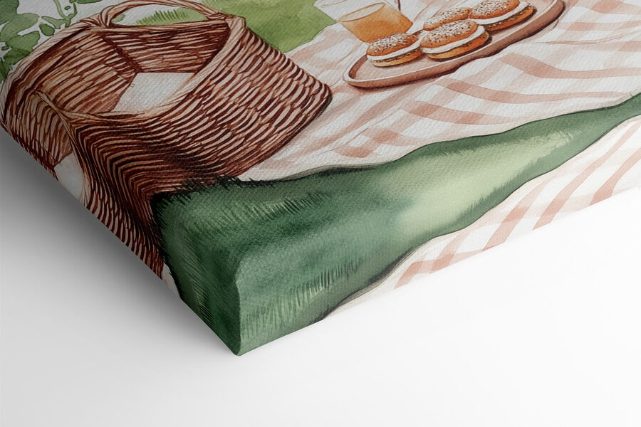 Gestalten Sie Ihren Raum mit diesem bezaubernden Aquarell-Leinwanddruck, der eine reizvolle Picknick-Szene zeigt, die geradezu nach faulen Nachmittagen schreit. Stellen Sie sich eine gemütliche Decke vor, die an einem ruhigen See ausgebreitet ist, mit leckeren Leckereien und erfrischenden Getränken, die in hübschen Körben verstaut sind. Es ist nicht nur ein Kunstwerk, sondern auch ein Stückchen Gelassenheit. Stellen Sie sich das Lachen von Freunden und das sanfte Rascheln von Blättern vor, während Sie Limonade schlürfen. Ob in der Küche, im Wohnzimmer oder in der ruhigen Leseecke, dieser Druck erzählt Geschichten von warmen Tagen und schönen Erinnerungen. Perfekt für jeden, der die Natur liebt und einen Sinn für Charme hat!