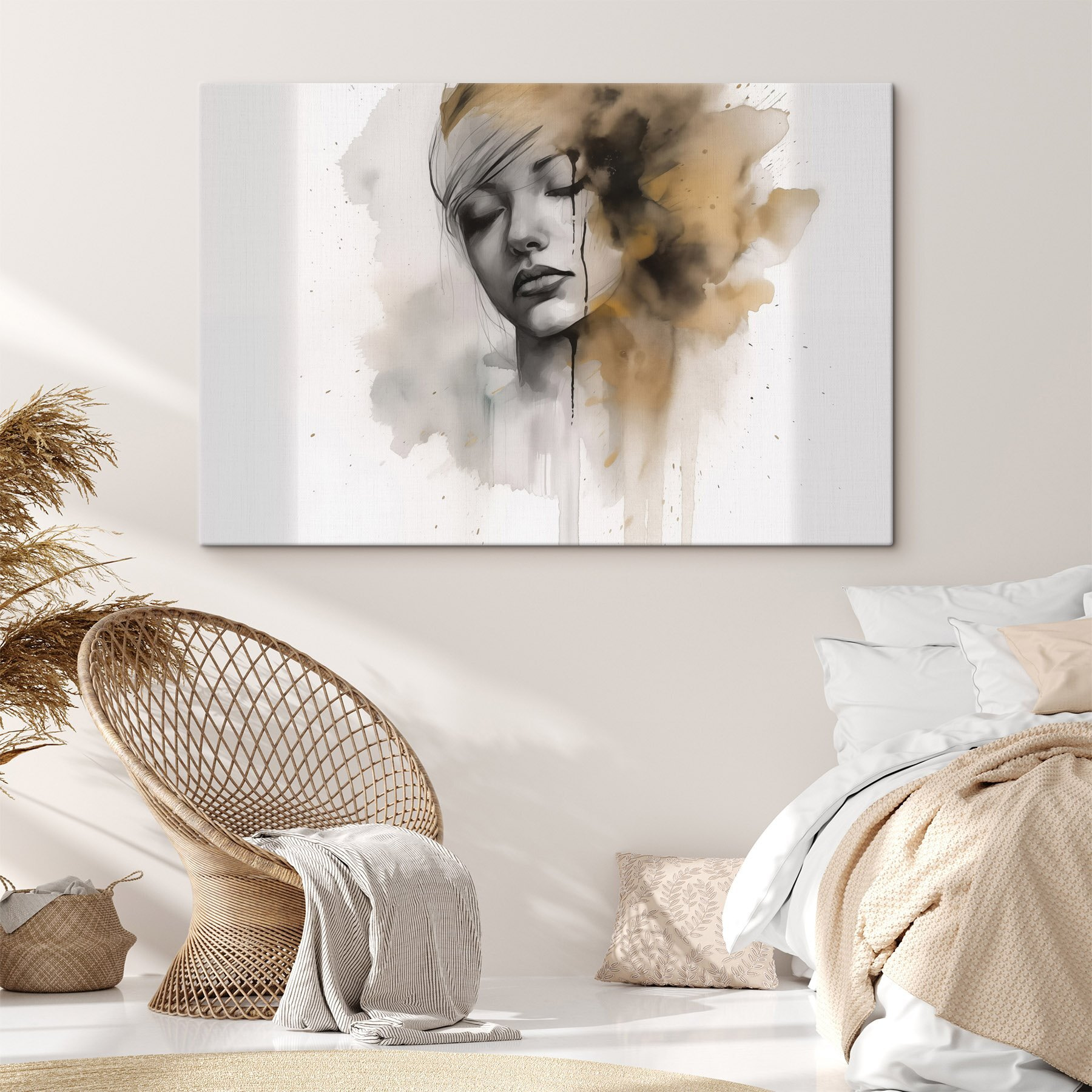 Treten Sie ein in eine Welt der Ruhe mit “Ethereal Expression in Muted Tones”. Dieser Leinwanddruck fängt einen fesselnden Moment ein, in dem Emotionen und Kunstfertigkeit in wunderbar sanften Tönen aufeinandertreffen. Stellen Sie sich vor, Sie hängen es in Ihrem Wohnzimmer auf – und Ihre Freunde kommen herein, und ihre Blicke finden sofort dieses Bild, das sie zu ruhigen Gesprächen anregt. Die sanften Farben fügen sich nahtlos in verschiedene Einrichtungsstile ein und machen es zu einem gemütlichen Blickfang. Es ist, als hätte man ein kleines Stück Gelassenheit an der Wand, das einen daran erinnert, dass Kunst nicht nur etwas zum Anschauen ist, sondern auch etwas zum Fühlen. Perfekt für ruhige Morgenstunden mit Kaffee oder einen späten Vibe-Check mit einem Glas Sekt. Bringen Sie einen Hauch von Faszination in Ihren Raum, der Geschichten erzählt, ohne ein Wort zu sagen!