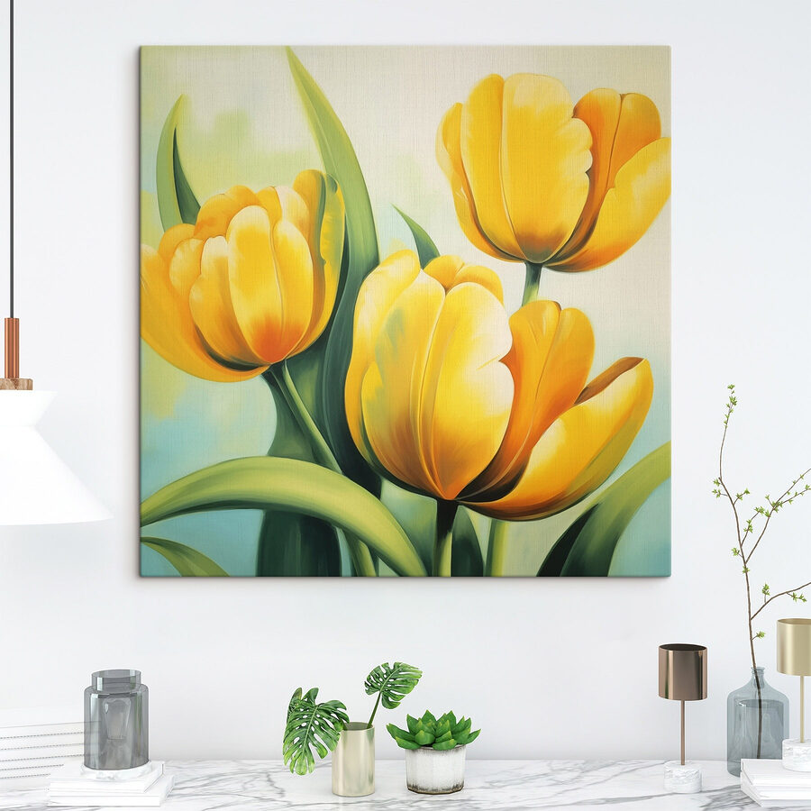 Dieser fröhliche Leinwanddruck mit gelben Tulpen bringt jeden Raum zum Strahlen! Stellen Sie sich vor, Sie betreten einen Raum und werden von diesen herrlichen Blüten begrüßt, als ob sie nur für Sie lächeln würden. Die warmen Gelbtöne und das leuchtende Grün bringen ein Stück Frühling ins Haus, ohne dass man sie gießen muss. Perfekt für eine einsame Wand oder um eine gemütliche Ecke aufzupeppen, ist es wie ein kleines Stück Freude an der Natur, nur ohne die Bienen. Dieses Stück lädt zu einer fröhlichen Stimmung ein und eignet sich perfekt für ein Wohnzimmer oder sogar eine helle Küche. Wer hätte gedacht, dass Blumen einen trüben Tag so einfach aufhellen können? Bei jedem Blick wird man daran erinnert, innezuhalten und an den Tulpen zu riechen – im übertragenen Sinne natürlich!