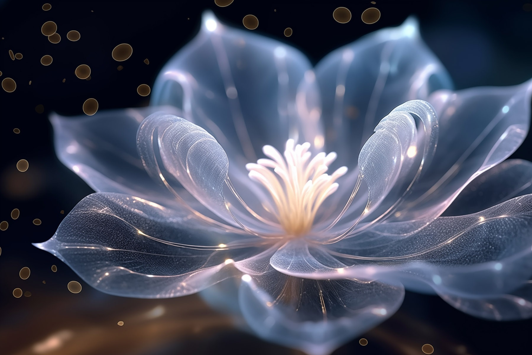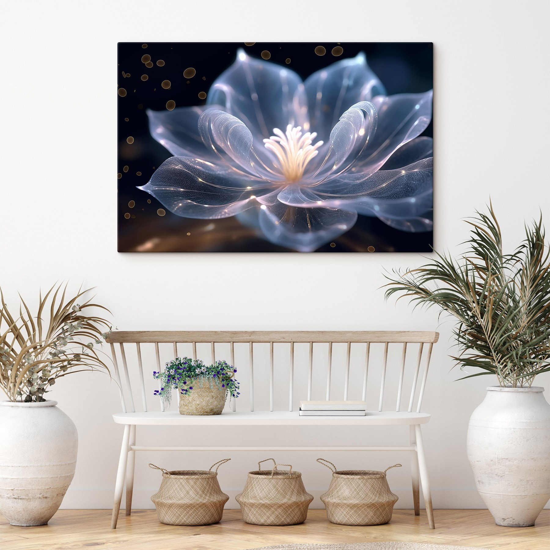 Verwandeln Sie Ihren Raum mit dem bezaubernden “Wandbilder Transparente Blume mit weißem Zentrum”. Dieses atemberaubende Werk ist nicht nur Kunst, sondern holt auch ein Stück Natur ins Haus. Stellen Sie sich vor, einen Blick auf diese zarte Blume zu erhaschen, deren durchscheinende Blütenblätter vor einem dunklen Hintergrund fast leuchten – perfekt, um fröhliche Gespräche oder Tagträume zu entfachen. Ob in einer gemütlichen Leseecke oder als Statement in einem lebhaften Wohnzimmer, dieses Stück lädt zum Lächeln und zur Gelassenheit ein. Es ist eine sanfte Erinnerung daran, dass Schönheit einfach und doch tiefgründig sein kann. Wie frische Blüten an einem Frühlingsmorgen erhellt es jede Wand und hebt die Stimmung mit seiner sanften Ausstrahlung. Lassen Sie dieses florale Wunderwerk seinen Charme in Ihr Zuhause einziehen – wer weiß, vielleicht inspiriert es sogar zu ein paar Gartenbesuchen!