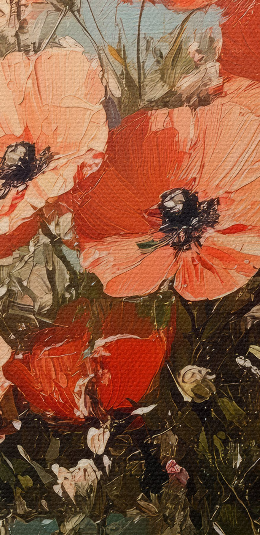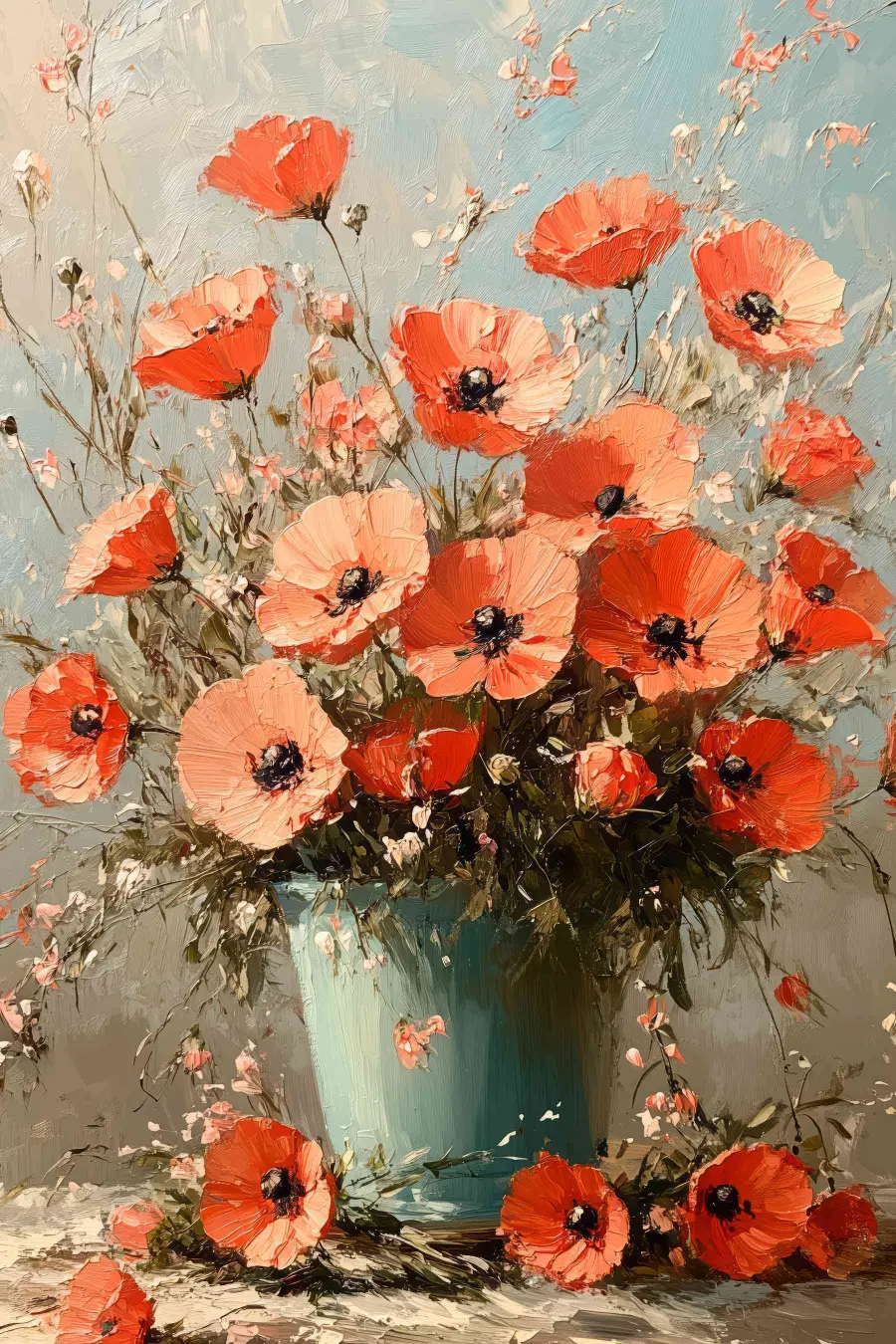 Verschönern Sie jeden Raum mit diesem atemberaubenden Gemälde “Wandbilder of Flowers in a Blue Vase”. Diese fröhlichen Mohnblumen scheinen vor Freude zu tanzen, nicht wahr? Stellen Sie sich vor: Sie kommen nach einem langen Tag ins Haus, und schon begrüßen Sie diese leuchtenden Blüten wie eine warme Umarmung. Die zartblaue Vase setzt einen erfrischenden Akzent und ist der perfekte Gesprächsanlass. Stellen Sie sich vor, Ihre Freunde würden Sie bewundern: “Wow, wo hast du die denn gefunden?” Nun, es sind die kleinen Dinge, nicht wahr? Lassen Sie sich von diesem Stück in einen friedlichen Garten entführen, auch wenn er nur in Ihrem Wohnzimmer steht. Ein Hauch von Natur, der nie verwelkt – klingt doch perfekt, oder?
