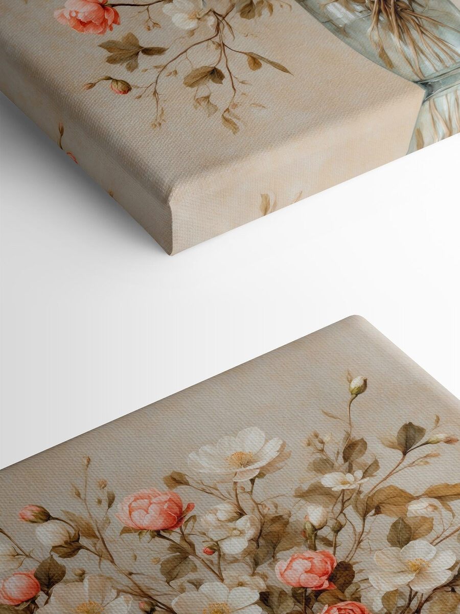 Verschönern Sie Ihren Raum mit diesem atemberaubenden Leinwanddruck von Blumen in einer Vase. Stellen Sie sich vor, Sie betreten einen Raum und werden von dieser entzückenden Blütenpracht begrüßt – perfekt für die Tage, an denen Sie ein wenig zusätzliche Freude brauchen. Die sanften Rosa- und Cremetöne tanzen miteinander und bringen einen Hauch der Schönheit der Natur ins Haus, ohne die Pollen (Gott sei Dank).