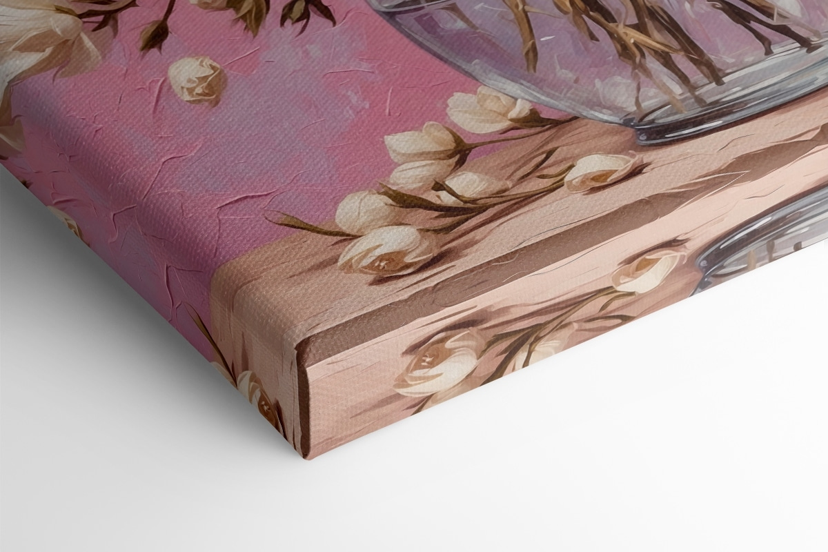 Dieser Leinwanddruck mit leuchtenden Blumen in einer Vase ist so, als ob man sich einen Garten in den Wohnraum holt, ohne dass man wegen der Pollen niesen muss! Die zarten Rosa- und Violetttöne tanzen miteinander und schaffen eine glückliche Atmosphäre, die perfekt für eine gemütliche Leseecke oder die leere Wand ist, die Sie immer wieder anstarrt. Stellen Sie sich vor, Sie schlürfen einen Kaffee mit diesem schönen Kunstwerk in der Nähe, das einen fröhlichen Farbtupfer setzt, der Ihre Stimmung hebt. Es ist eine schöne Erinnerung an die Schönheit der Natur und inspiriert Sie vielleicht dazu, Ihren eigenen grünen Daumen zu pflegen oder einfach nur die Aussicht aus der Ferne zu genießen. Perfekt für Blumenliebhaber und alle, die einen Spritzer Kreativität zu schätzen wissen!