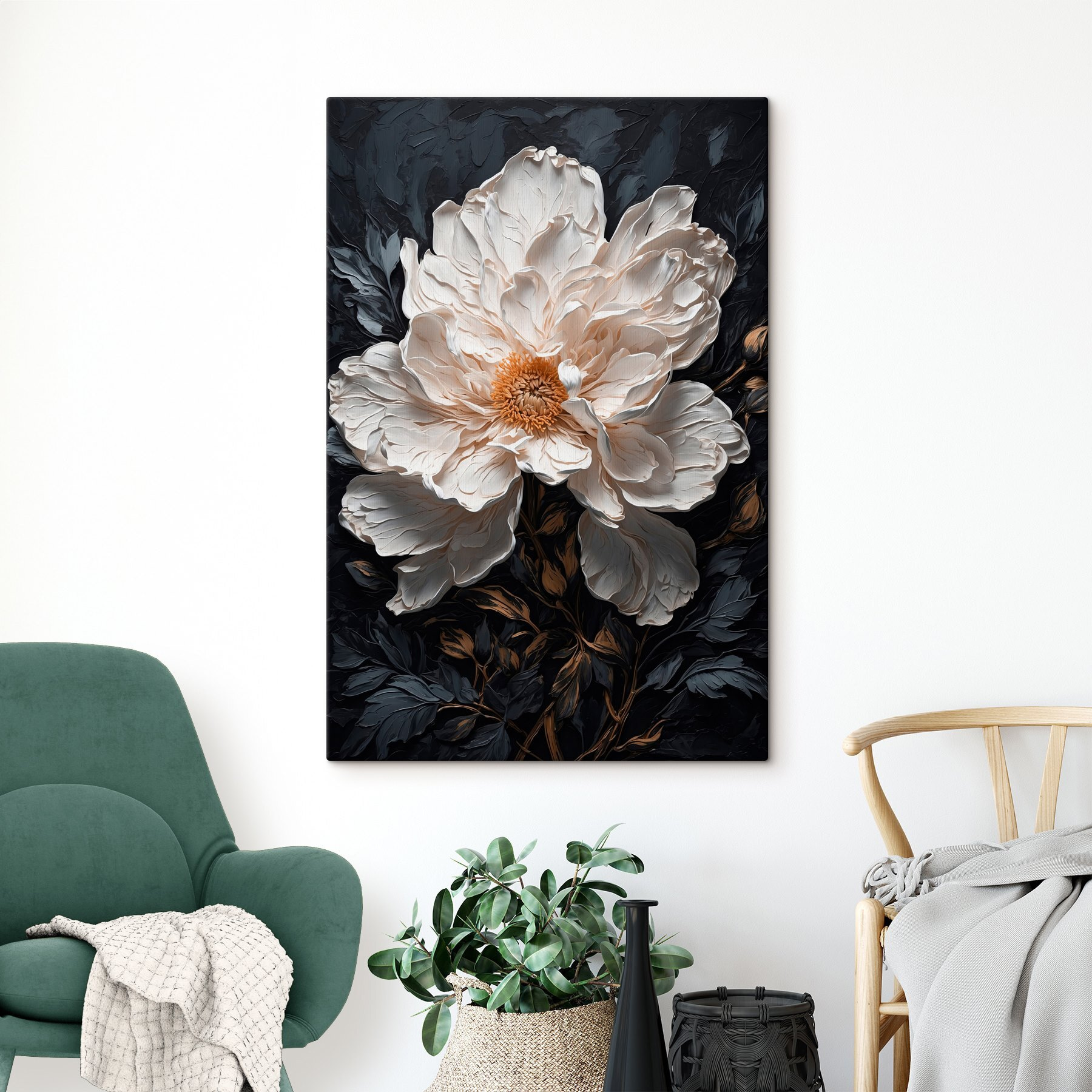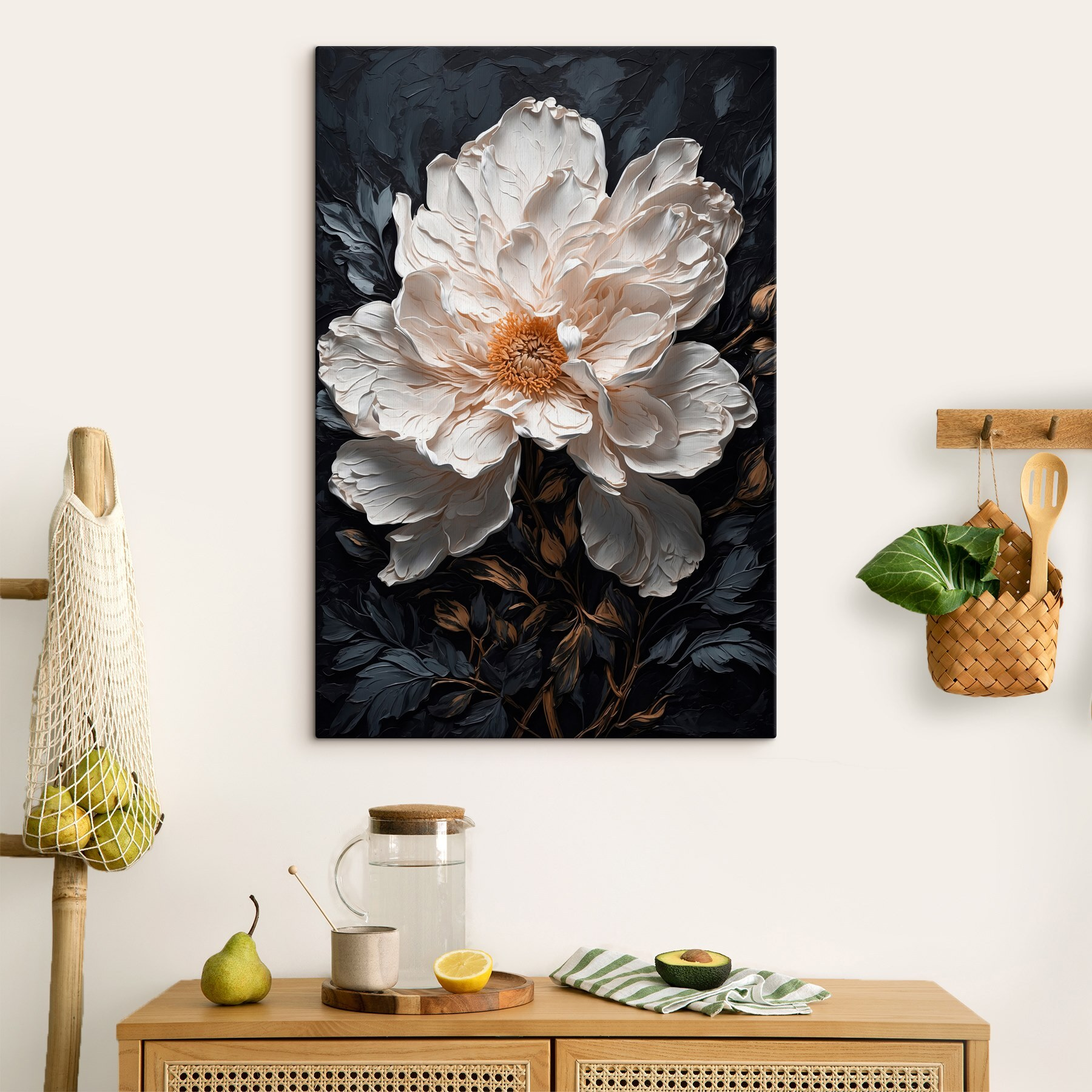 Holen Sie sich einen Hauch von Natur ins Haus mit diesem atemberaubenden Leinwanddruck, der eine wunderschöne weiße Blume zeigt, die stolz ihre sonnengelbe Mitte zur Schau stellt. Stellen Sie sich vor, dieses Kunstwerk in einer gemütlichen Ecke oder über einem lebhaften Sofa aufzuhängen – es ist, als hätte man einen immerwährenden Garten, der das ganze Jahr über blüht. Der Kontrast zwischen den zarten Blütenblättern und dem satten Hintergrund verleiht dem Bild eine Tiefe, die einfach fesselnd ist. Perfekt für alle, die sich nach ein wenig Ruhe in ihrem Raum sehnen, denn es flüstert Eleganz, ohne nach Aufmerksamkeit zu schreien. Es ist wie eine sanfte Erinnerung daran, innezuhalten und an den Blumen zu riechen – auch wenn sie nur an der Wand hängen!