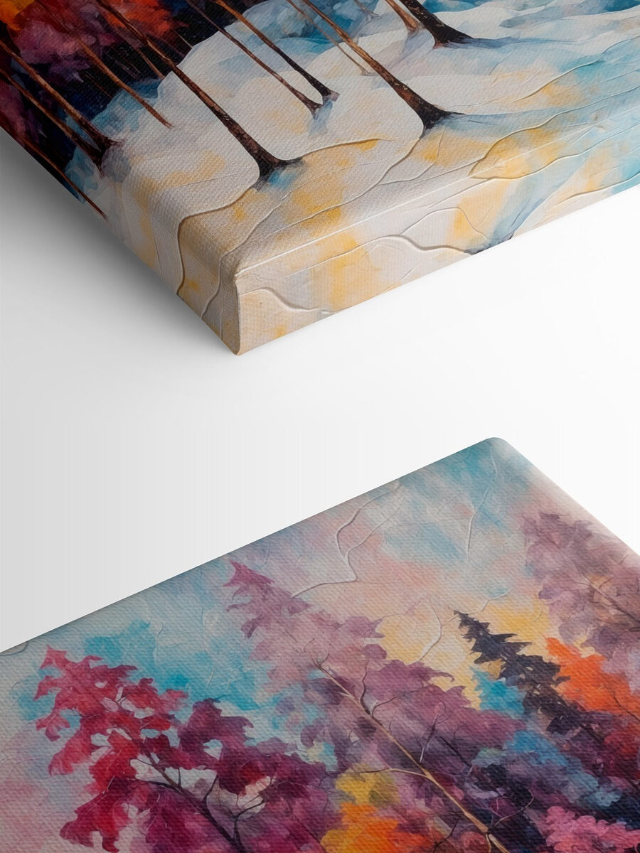 Stellen Sie sich vor, Sie schlürfen einen heißen Kakao, während Sie auf dieses verträumte, verschneite Waldbild blicken. Es ist wie eine gemütliche Umarmung für Ihre Wand, finden Sie nicht auch? Dieses lebendige Bild zeigt Bäume in feurigen Herbstfarben, die sich von einer knackigen, weißen Schneedecke abheben – ein echter Hingucker! Ein Blick auf den sanften Bach, der sich durch die verschneite Landschaft schlängelt, genügt, um selbst an den wärmsten Tagen eine kleine Abkühlung zu spüren. Er eignet sich perfekt, um einen Hauch von Natur ins Haus zu holen, denn er sorgt für eine ruhige Atmosphäre, ohne ein Wort zu sagen. Ganz gleich, ob Sie sich nach einem langen Tag entspannen oder eine spontane Zusammenkunft veranstalten, dieses Kunstwerk wird Ihnen die Show stehlen und für Gesprächsstoff sorgen.