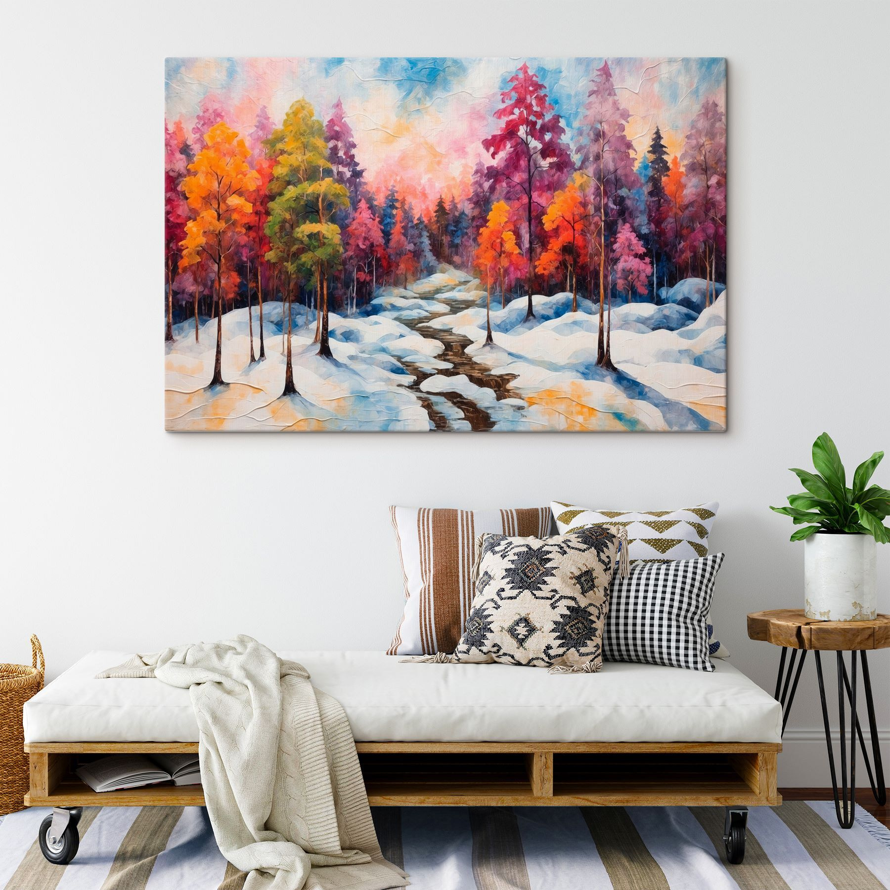 Stellen Sie sich vor, Sie schlürfen einen heißen Kakao, während Sie auf dieses verträumte, verschneite Waldbild blicken. Es ist wie eine gemütliche Umarmung für Ihre Wand, finden Sie nicht auch? Dieses lebendige Bild zeigt Bäume in feurigen Herbstfarben, die sich von einer knackigen, weißen Schneedecke abheben – ein echter Hingucker! Ein Blick auf den sanften Bach, der sich durch die verschneite Landschaft schlängelt, genügt, um selbst an den wärmsten Tagen eine kleine Abkühlung zu spüren. Er eignet sich perfekt, um einen Hauch von Natur ins Haus zu holen, denn er sorgt für eine ruhige Atmosphäre, ohne ein Wort zu sagen. Ganz gleich, ob Sie sich nach einem langen Tag entspannen oder eine spontane Zusammenkunft veranstalten, dieses Kunstwerk wird Ihnen die Show stehlen und für Gesprächsstoff sorgen.