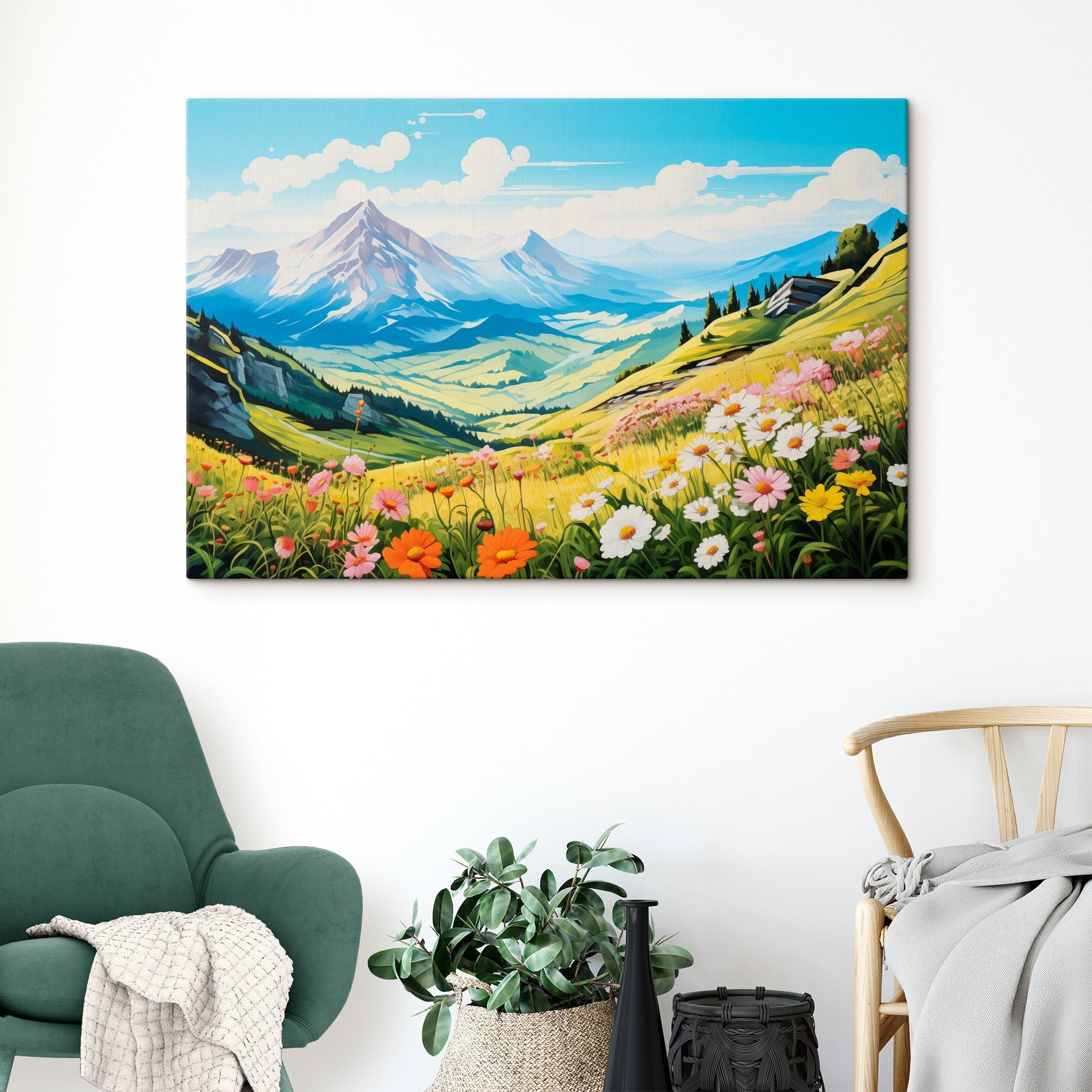 Verwandeln Sie jeden Raum in einen ruhigen Zufluchtsort mit diesem atemberaubenden Leinwanddruck. “Wandbilder Landscape with Mountains and Flowers” fängt eine lebendige Welt ein, in der majestätische Gipfel auf blühende Felder treffen. Stellen Sie sich vor, Sie schlürfen Ihren Morgenkaffee, umgeben von diesen farbenfrohen Blumen und atemberaubenden Bergen – ein wahrer Stimmungsaufheller! Die Mischung aus hellen Farbtönen und sanften Pastellfarben schafft ein perfektes Gleichgewicht, das sowohl fröhlich als auch beruhigend wirkt. Hängen Sie es in Ihrem Wohn- oder Schlafzimmer auf, und lassen Sie sich von der Schönheit der Natur inspirieren. Wer wünscht sich nicht ein kleines Stückchen Paradies für sein Zuhause?