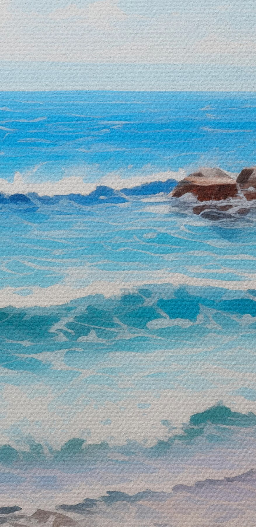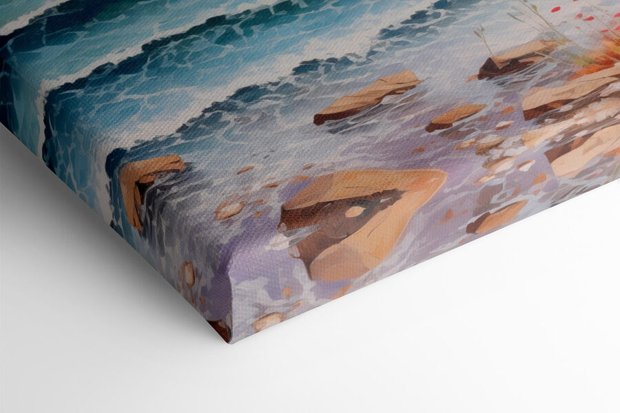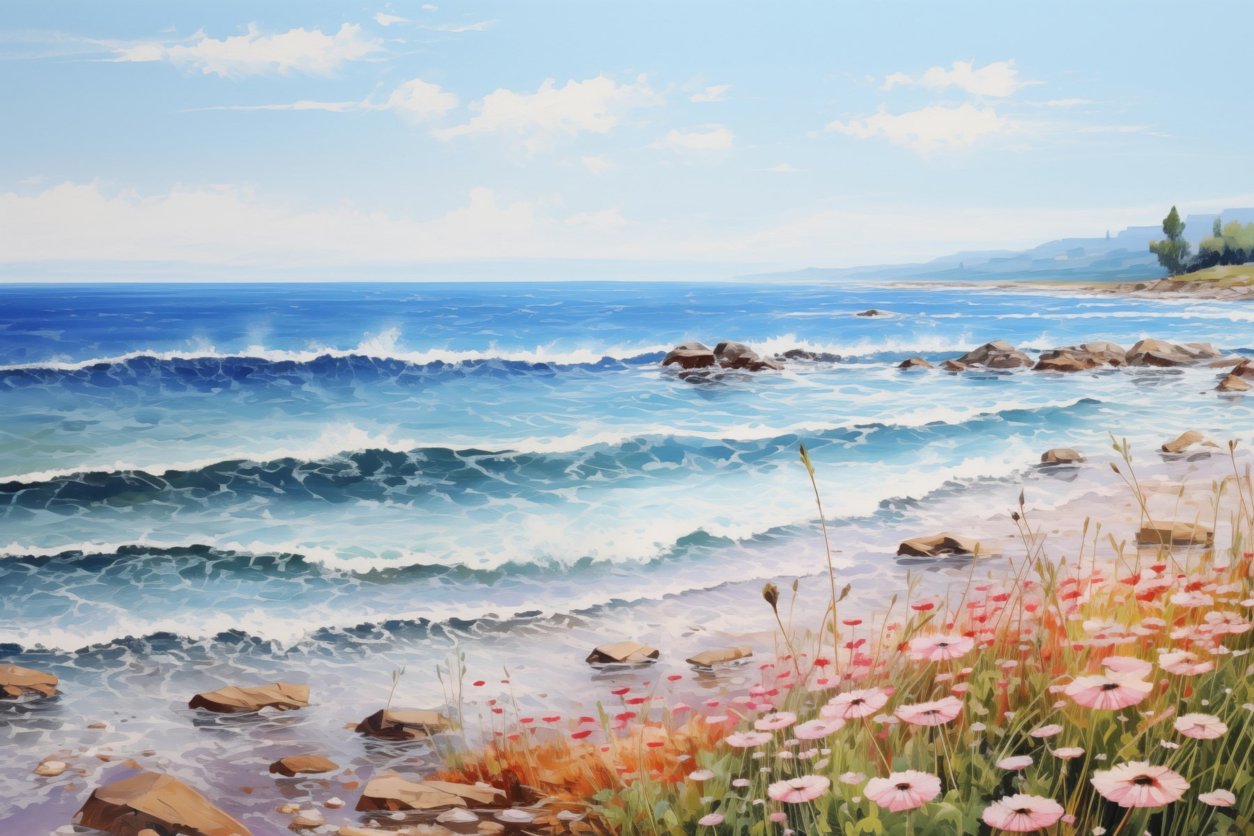 Verwandeln Sie jede Wand in ein Stückchen Paradies mit diesem atemberaubenden Leinwanddruck, der eine ruhige Strandszene zeigt. Stellen Sie sich das sanfte Plätschern der Wellen am Ufer vor, während sich leuchtende Blumen in einer leichten Brise wiegen – ach, das ist pure Glückseligkeit! Die satten Blautöne des Meeres, gemischt mit den zarten Rosatönen der Blüten, bilden eine perfekte Harmonie, die die Seele beruhigt. Es ist wie ein Mini-Urlaub direkt in Ihrem Wohnzimmer. Ein perfekter Gesprächsanlass oder einfach eine kleine Flucht aus einem hektischen Tag. Dieses Kunstwerk lädt Wärme und Frieden ein und bringt die Schönheit der Natur ins Haus, wo sie hingehört.