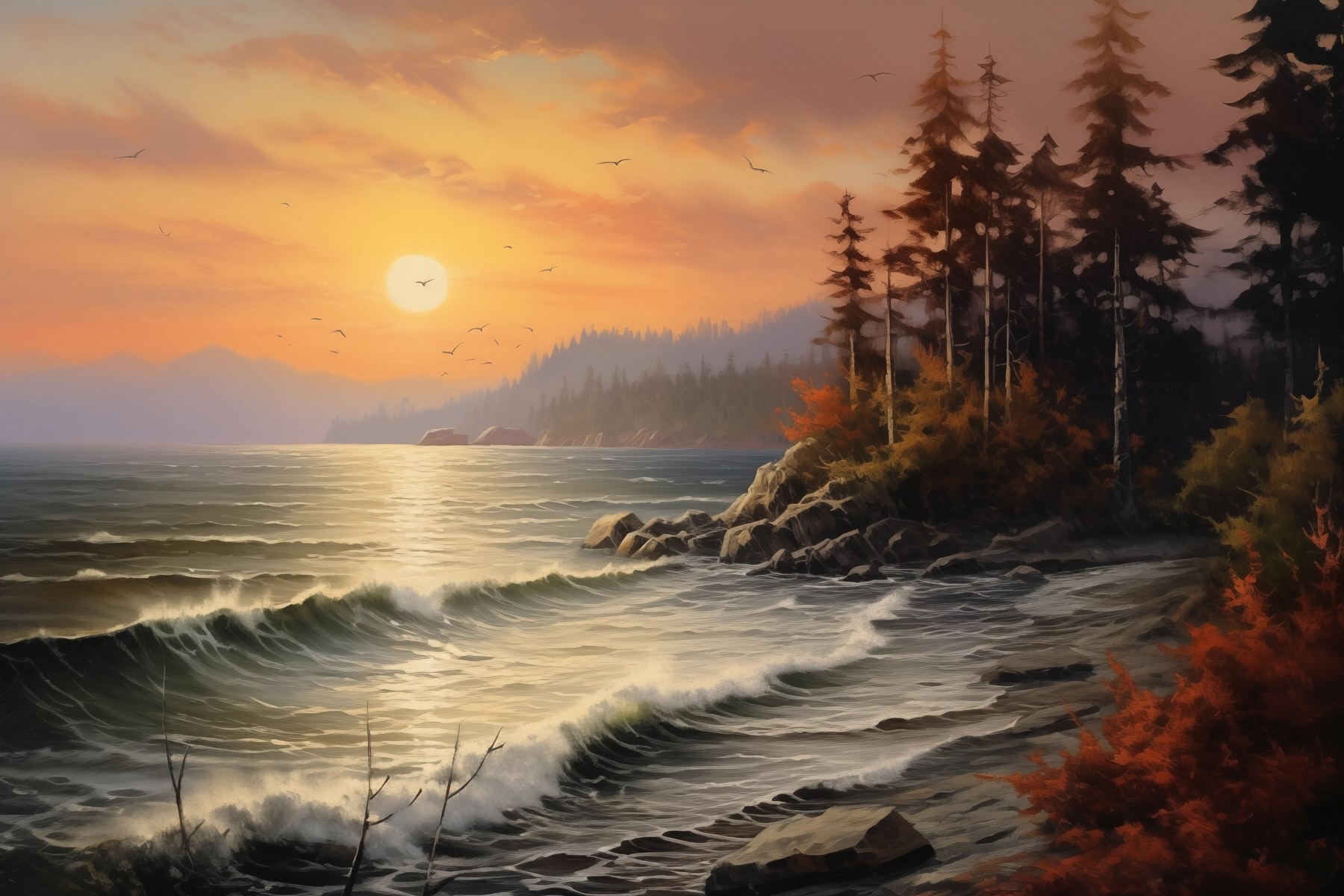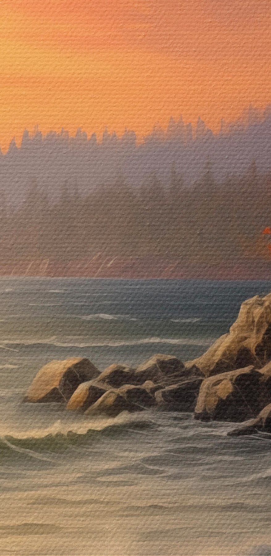 Bringen Sie ein Stück heiteres Küstenleben in Ihren Raum mit dem “Leinwandbild Sonnenuntergang über einem felsigen Strand”. Stellen Sie sich vor, Sie lassen sich mit einem warmen Getränk in der Hand in Ihren Lieblingssessel sinken und betrachten die Sonne, die am Horizont verschwindet und den Himmel in Orange- und Rosatönen taucht. Diese sanften Wellen? Sie flüstern praktisch süße Nichtigkeiten. Dieses Stück hängt nicht nur, sondern lädt zu Tagträumen von sandigen Zehen und salzigen Brisen ein. Es eignet sich perfekt, um ein Wohnzimmer zu verschönern oder ein Arbeitszimmer in eine entspannte Atmosphäre zu versetzen, und wird mit Sicherheit zu Gesprächen und einem Hauch von Fernweh anregen. Sie werden das Gefühl haben, nur einen Atemzug vom Strand entfernt zu sein.