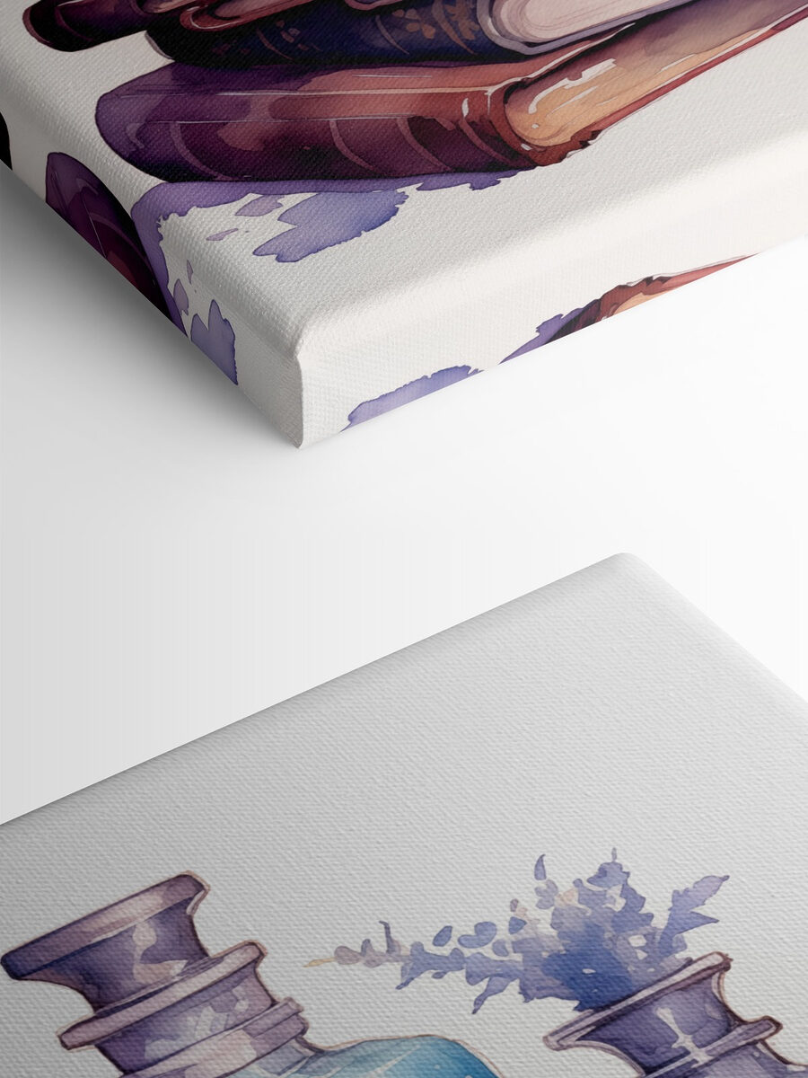 Tauchen Sie ein in diese bezaubernde Aquarellszene mit einem charmanten Bücherstapel und eleganten Flaschen. Stellen Sie sich vor, wie die sanften Farbtöne Geschichten von Abenteuern und vergessenen Märchen flüstern, während zarte Blumen durchscheinen und einen Hauch der Anmut der Natur hinzufügen. Es ist, als hätte man eine kleine Bibliothek voller Geheimnisse an der Wand. Perfekt für alle, die es sich in einer Leseecke oder einer ruhigen Ecke ihres Zuhauses gemütlich machen wollen. Stellen Sie sich vor, Sie lassen sich in einen bequemen Sessel sinken, ein warmes Getränk in der Hand, und fühlen sich in eine verträumte Welt versetzt, in der jeder Blick auf dieses Kunstwerk ein wenig Freude auslöst. Eine wunderbare Art, jeden Raum zu verschönern!
