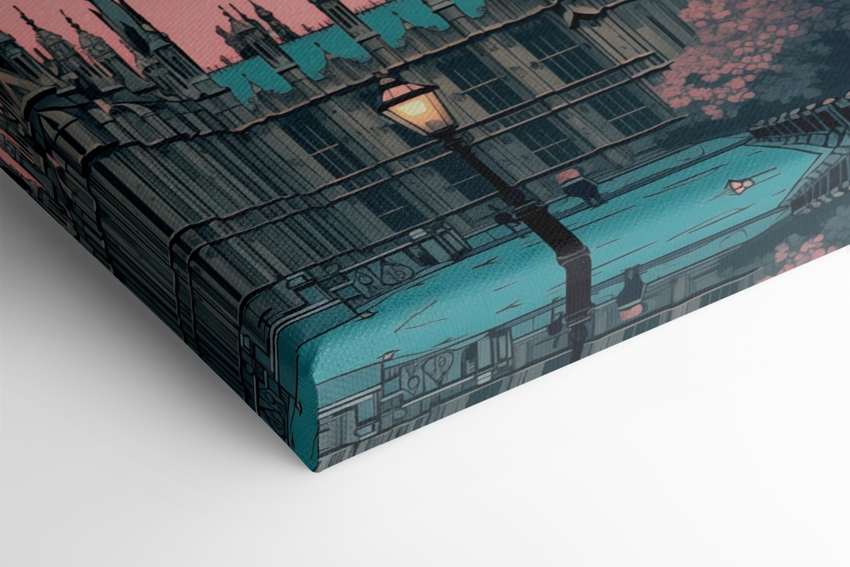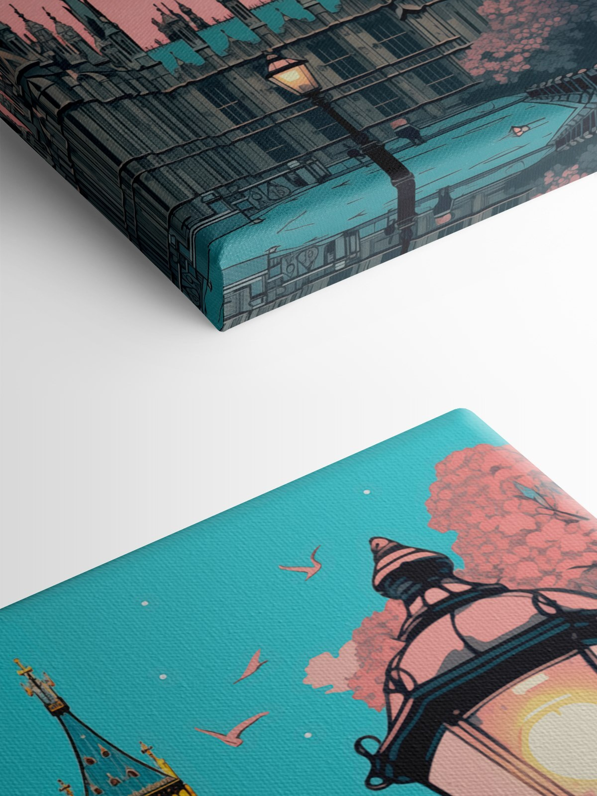 Dieser lebendige Leinwanddruck mit einem atemberaubenden Uhrenturm, umgeben von anmutigen Bäumen und einem charmanten Laternenpfahl, verwandelt jeden Raum. Stellen Sie sich vor, wie Sie im warmen Schein der Straßenlaterne einen Tee trinken, während die Uhr im Hintergrund tickt – perfekt, um von Abenteuern in der Stadt zu träumen. Der verspielte rosa Himmel und die sanften Blautöne sorgen für einen Hauch von Skurrilität und machen es zu einem fantastischen Gesprächsanlass. Hängen Sie es auf und lassen Sie sich von ihm zu Ihren täglichen Unternehmungen inspirieren, sei es zum morgendlichen Kaffee oder zur abendlichen Entspannung. Wer hätte gedacht, dass Wohndekoration Sie so entführen kann?