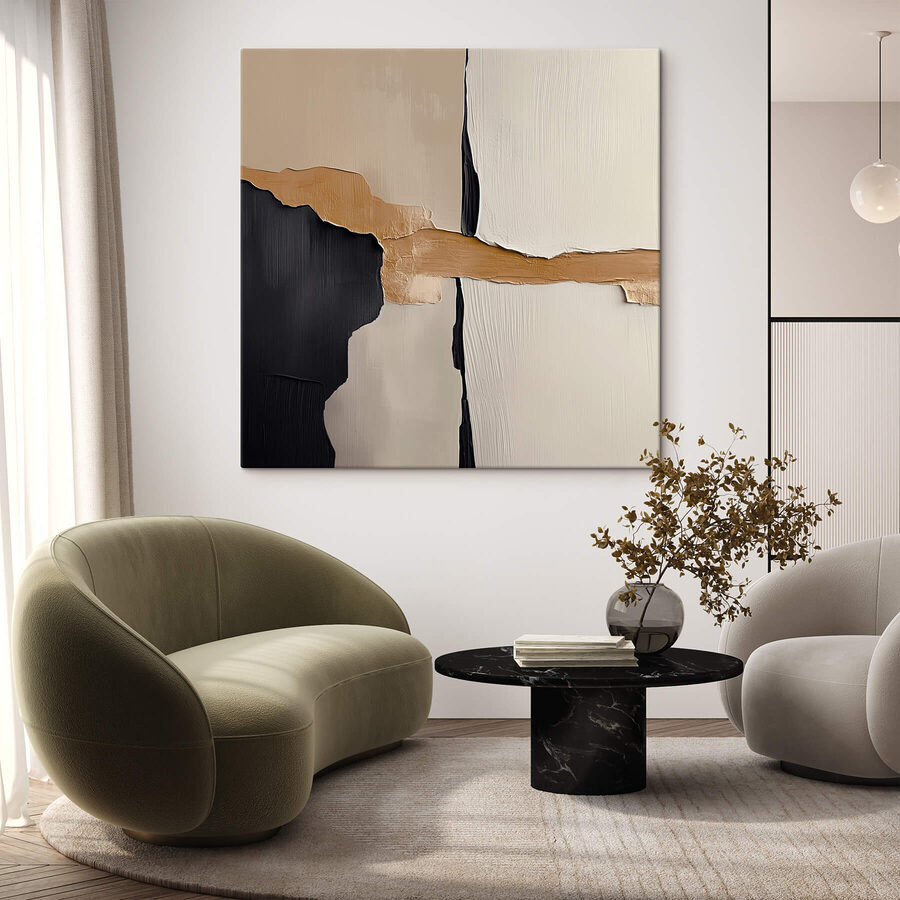 Verwandeln Sie Ihren Raum mit diesem atemberaubenden Leinwanddruck “Wandbilder Black and White Wall with a Brown Strip”. Es ist wie ein kleines Stück moderner Kunstmagie, das Raffinesse versprüht und dabei mühelos cool bleibt. Das kühne Schwarz und das sanfte Weiß werden spielerisch durch einen warmen braunen Streifen unterbrochen, der dem Bild einen Hauch von Persönlichkeit verleiht. Stellen Sie es sich über Ihrer Couch oder in einer gemütlichen Leseecke vor – ein perfekter Hintergrund für Gespräche mit Kaffee oder ruhige Abende. Dieses Kunstwerk dekoriert nicht nur, es lädt auch zu Geschichten ein und regt jedes Mal, wenn Sie es betrachten, zu Gesprächen und einem Lächeln an. Wer hätte gedacht, dass sich Kunst wie eine warme Umarmung anfühlen kann?