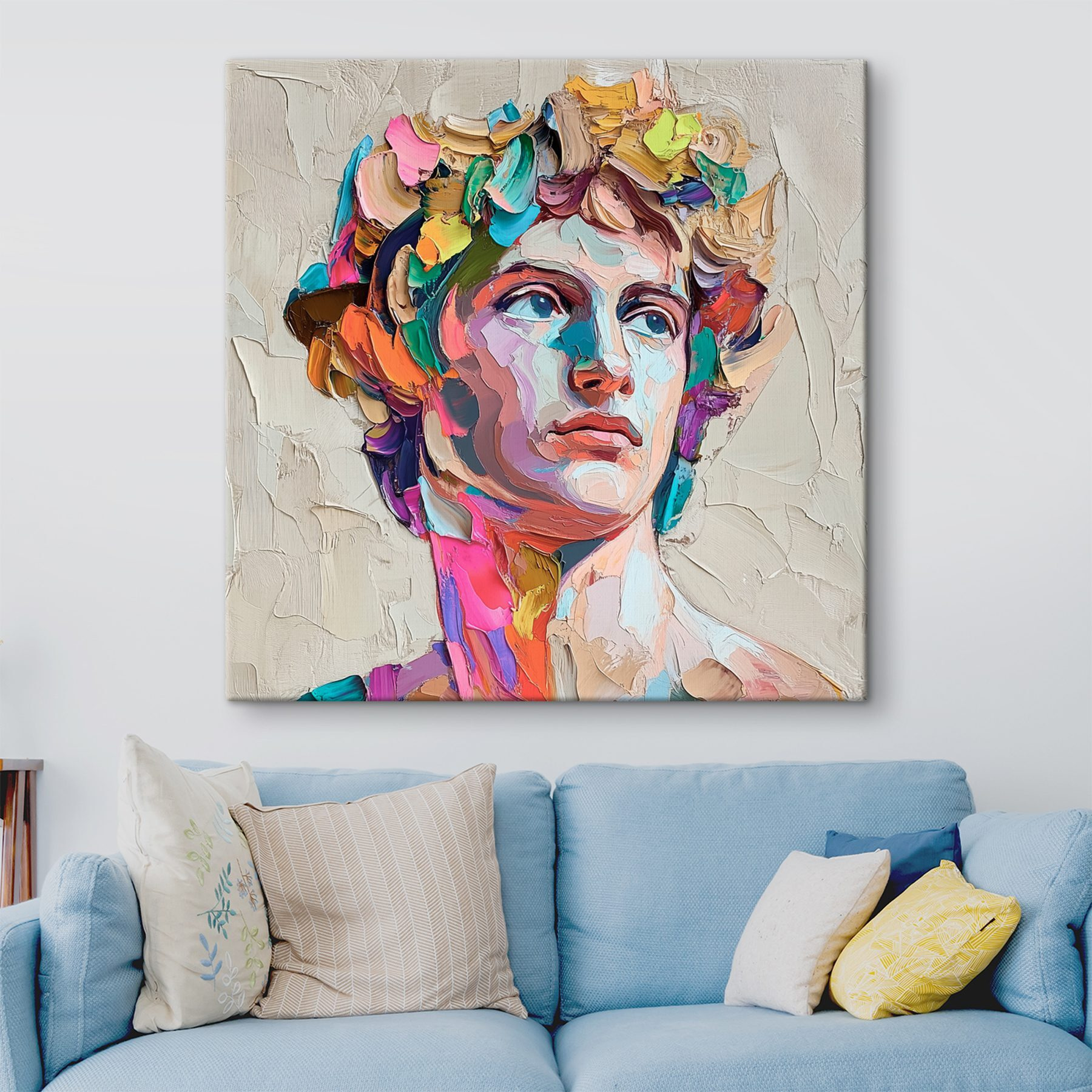 Stellen Sie sich vor, wie dieser lebendige Leinwanddruck ein Statement in Ihrem Raum abgibt – wie ein Spritzer Persönlichkeit in Farbe verpackt! Dieses Kunstwerk mit dem Kopf eines Mannes ist nicht nur Kunst, sondern auch ein Gesprächsanlass. Die Farbtöne tanzen miteinander und ziehen Sie mit ihrem spielerischen Geist an. Stellen Sie sich vor, wie die Gäste davon angezogen werden und von ihren Lieblingskünstlern erzählen oder von einer Zeit, in der sie versucht haben zu malen (und am Ende mehr Farbe auf sich selbst als auf der Leinwand hatten).