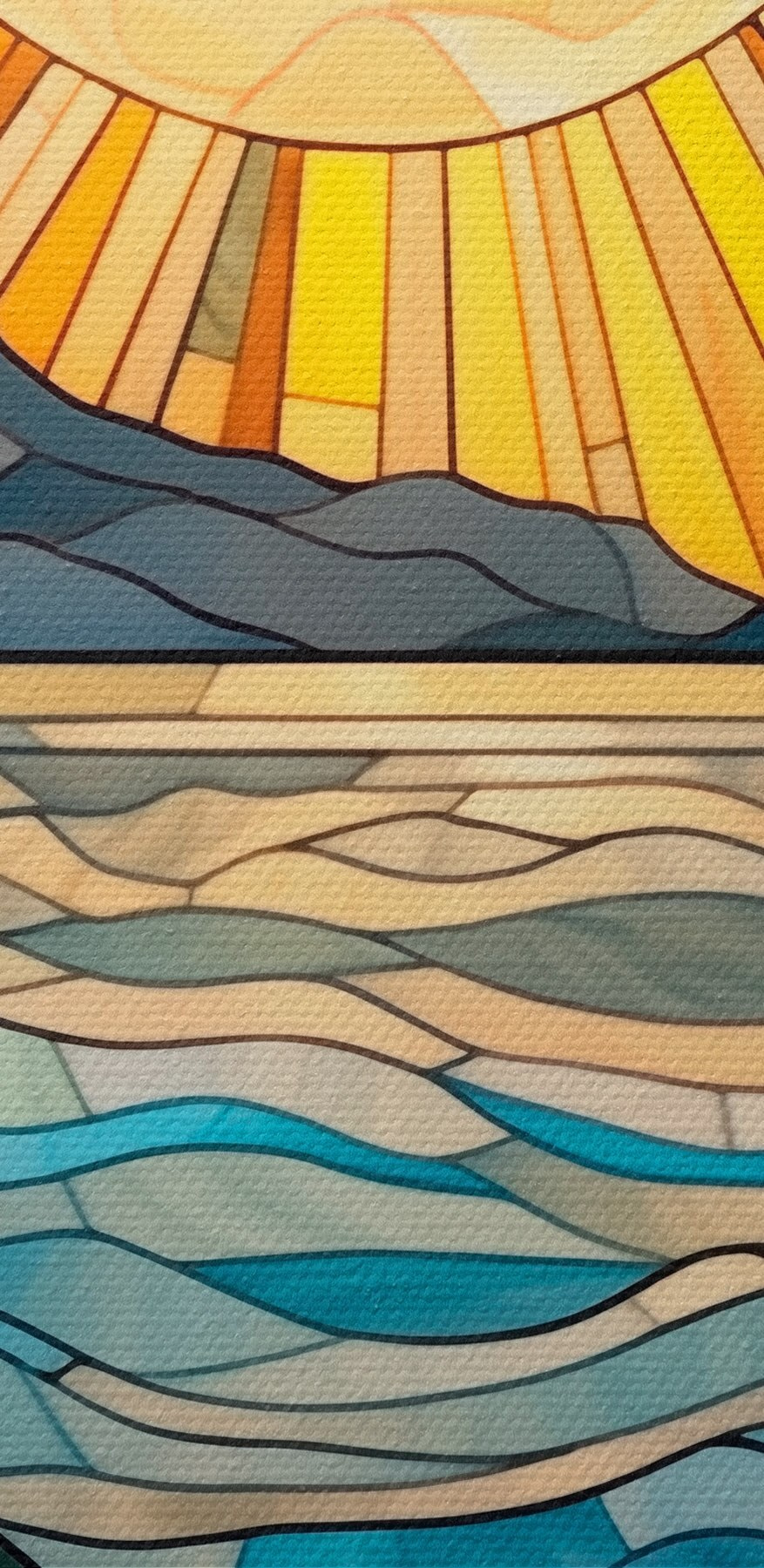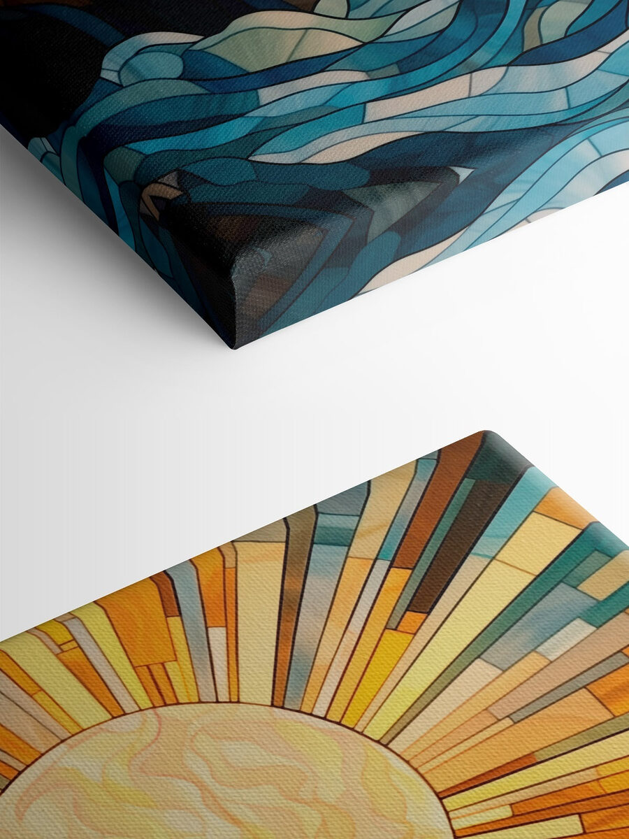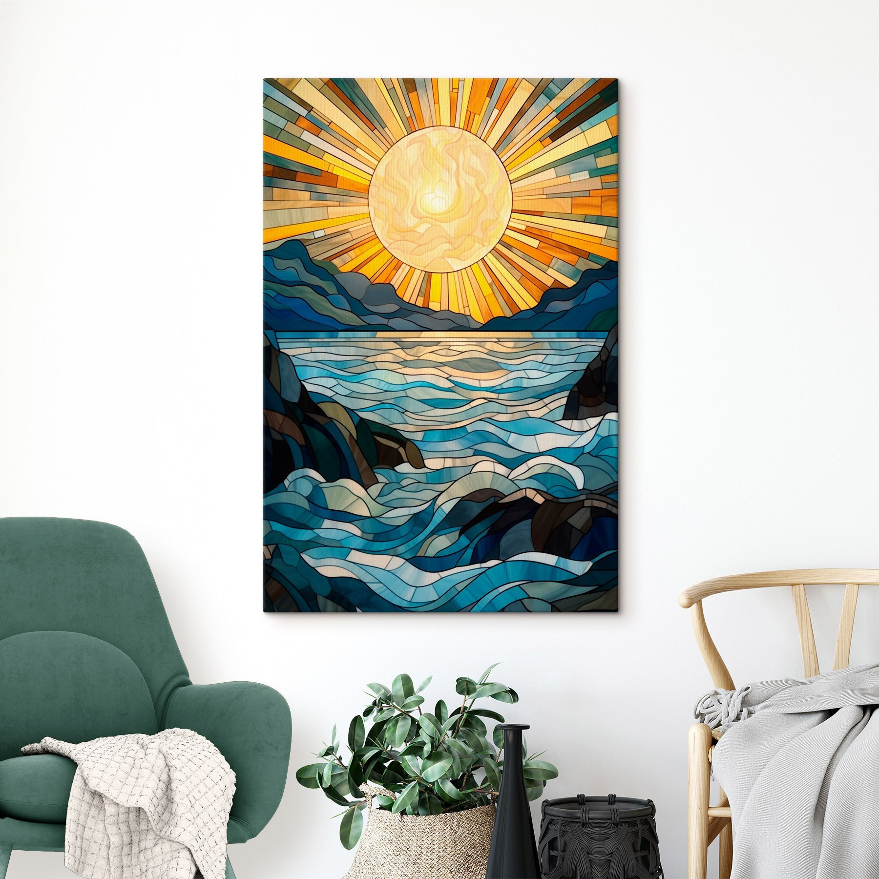 Holen Sie sich einen Hauch von Natur ins Haus mit diesem atemberaubenden Leinwanddruck, der ein Buntglasfenster zeigt, das einen strahlenden Sonnenuntergang über einem ruhigen Fluss festhält. Stellen Sie sich vor, wie die Sonne leuchtende Farben über Ihre Wände ergießt und jeden Raum in einen friedlichen Rückzugsort verwandelt. Es ist wie eine Einladung, innezuhalten, durchzuatmen und die einfache Schönheit der Natur zu genießen. Egal, ob es Ihr Wohnzimmer schmückt oder eine gemütliche Ecke aufhellt, dieses Kunstwerk bringt einen Farbtupfer und einen Hauch von Gelassenheit. Perfekt für faule Nachmittage, an denen man tagträumt oder einfach nur eine Tasse Tee genießt – ein kleines Stück Paradies direkt bei Ihnen zu Hause.