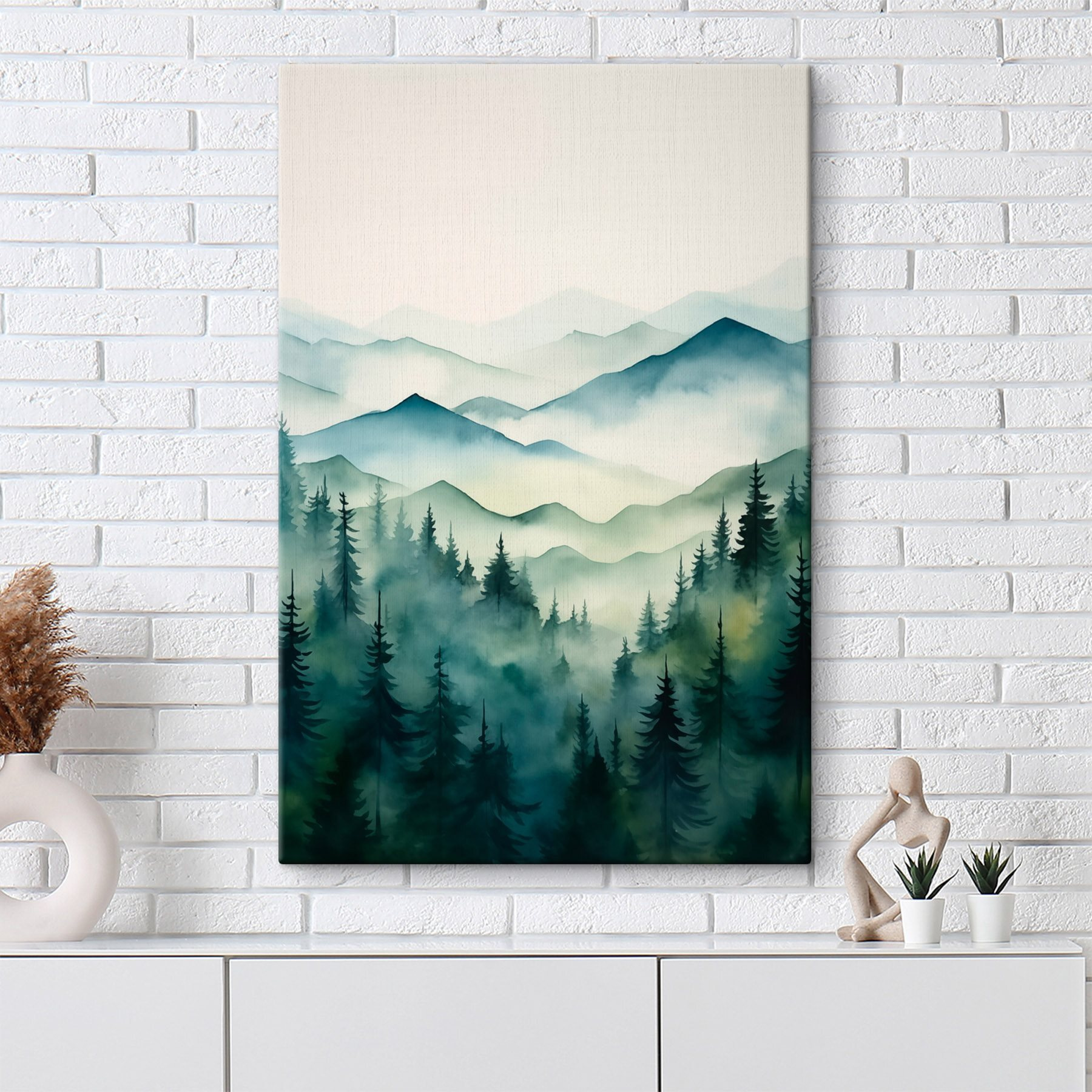 Stellen Sie sich vor, Sie wachen mit dem Blick auf die Berge auf, auch wenn Ihr Fenster auf eine belebte Straße zeigt. Dieser Leinwanddruck fängt mühelos die beruhigende Essenz einer nebligen Bergkette ein, in der die Bäume wie kleine Krieger der Natur tapfer durch den Nebel stoßen. Die weichen Farbtöne wirken wie eine sanfte Umarmung und eignen sich perfekt, um die friedliche Atmosphäre des Waldes in ein gemütliches Wohnzimmer oder einen inspirierenden Arbeitsbereich zu bringen. Stellen Sie sich vor, Sie schlürfen Ihren Morgenkaffee vor ihm – das ist eine tolle Stimmung! Es flüstert Ihrer Seele zu und erinnert Sie an ruhige Wanderungen und faule Tage. Ganz ehrlich, wer würde sich nicht ein Stück Magie der Natur in sein Zuhause holen wollen? Perfekt für alle, die Ruhe mit einem Hauch von Abenteuer verbinden wollen.