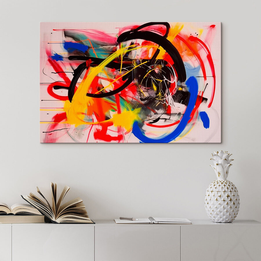 Bringen Sie mit diesem lebendigen Leinwandbild Farbe und Kreativität in jeden Raum. Stellen Sie sich vor, Sie betreten einen Raum und Ihre Augen werden sofort von diesen verspielten Spritzern in Rot, Gelb und Blau gefangen genommen. Es ist wie eine Party für Ihre Wände – Sie brauchen keine Einladungen! Dieses Kunstwerk erzählt Geschichten von Spontaneität, wie ein Tanz, bei dem sich jeder Strich lebendig und frei anfühlt. Perfekt für eine einsame Ecke oder eine Wand, die nur darum bettelt, etwas Persönlichkeit zu bekommen. Vielleicht halten Ihre Freunde sogar mitten in ihrem Kaffee inne und lassen sich von der lebendigen Energie des Kunstwerks mitreißen. Wer hätte gedacht, dass Kunst so viel Freude auslösen kann? Bei dieser Leinwand geht es nicht nur um Dekoration – sie ist eine Einladung zum Fühlen!