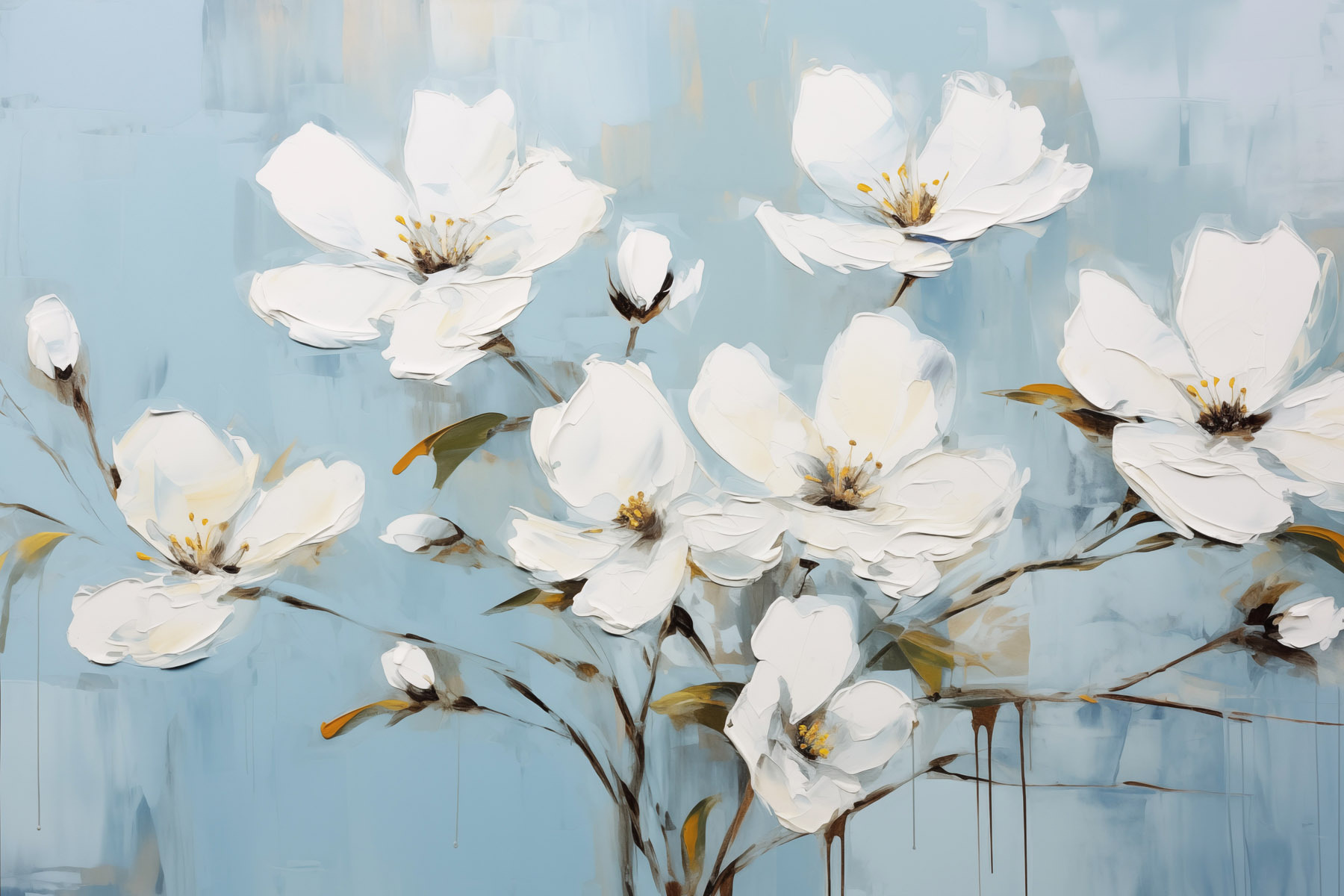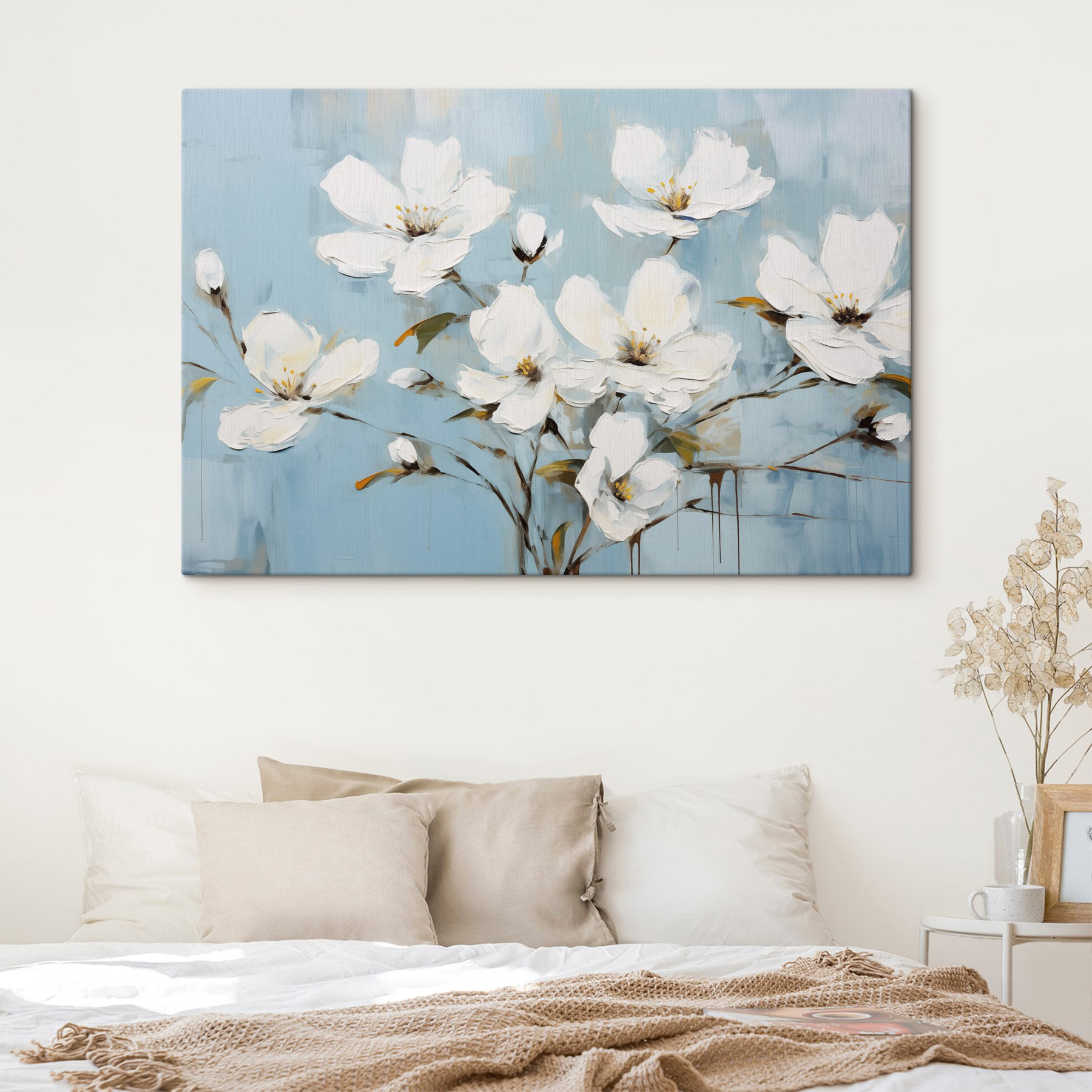 Bringen Sie einen Hauch von Natur in Ihr Zuhause mit diesem wunderschönen Leinwanddruck mit weißen Blumen! Stellen Sie sich vor: ein heller, luftiger Raum, der sich das ganze Jahr über nach Frühling anfühlt. Die sanften Blautöne im Hintergrund bringen die Blüten zum Leuchten und verleihen jedem Raum Charme und Wärme. Es ist, als hätte man einen kleinen Garten an der Wand – nur ohne die Gießkanne! Dieses Kunstwerk eignet sich hervorragend für Wohnzimmer, Küchen oder sogar eine gemütliche Leseecke und lädt zu Ruhe und Freude ein. Perfekt für die Momente, in denen das Leben ein wenig hektisch wird. Ein bisschen Blumenzauber kann viel bewirken!