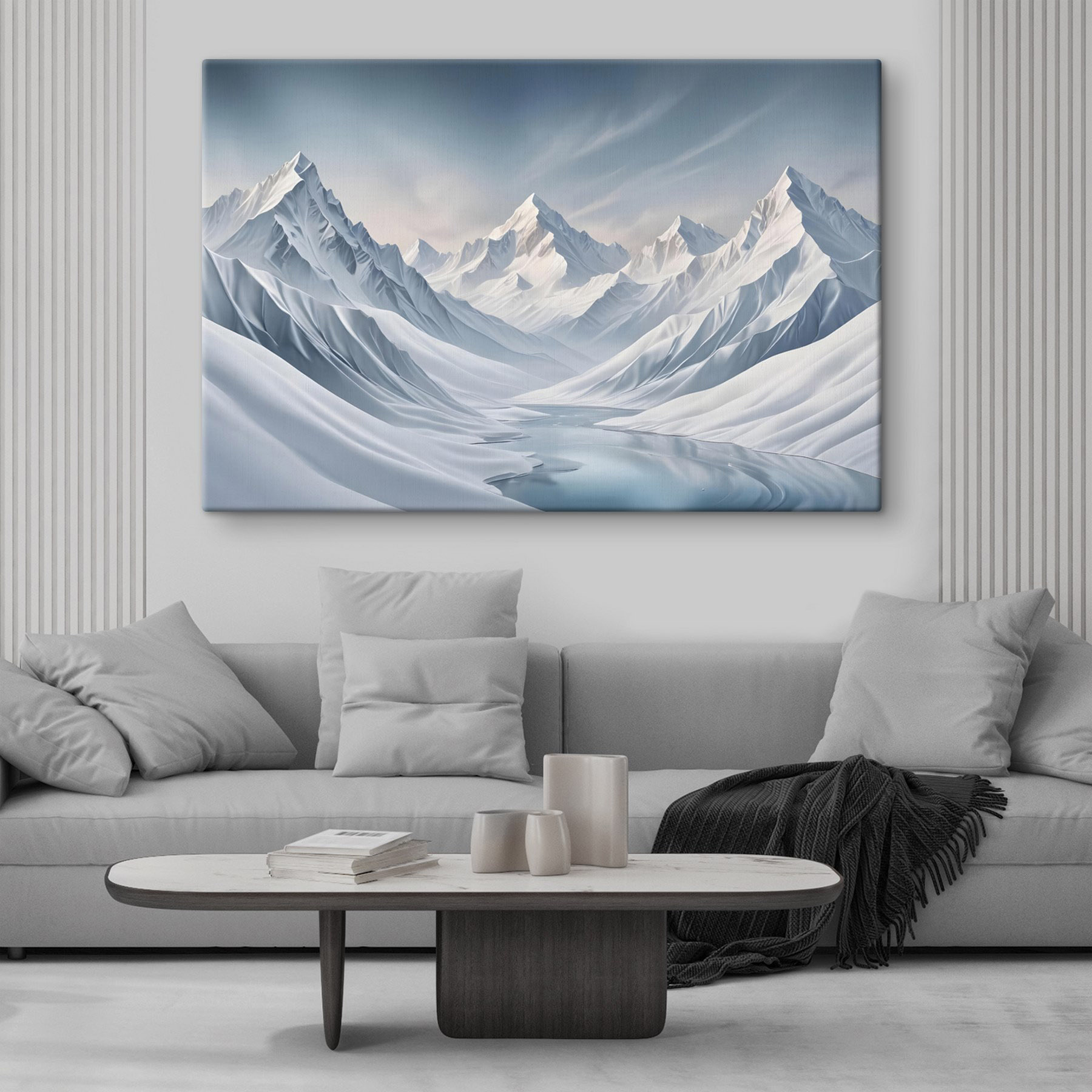 Verwandeln Sie Ihren Raum mit diesem atemberaubenden “Wandbilder Snowy Mountain Range with a Lake”. Stellen Sie sich vor, Sie stehen an einem ruhigen See, umgeben von majestätischen schneebedeckten Gipfeln. Dieses Bild fängt diesen atemberaubenden Moment ein und bringt Ruhe und einen Hauch von wildem Abenteuer in Ihr Zuhause. Es eignet sich perfekt für kühle Abende, die man gemütlich im Haus verbringt, und weckt Gedanken an die frische Bergluft und das sanfte Knirschen des Schnees unter den Füßen. Ob es nun ein Wohnzimmer, ein Büro oder eine gemütliche Leseecke schmückt, es ist, als hätte man einen kleinen Urlaub direkt an der Wand. Also, los geht’s – lassen Sie diese verschneiten Vibes Ihre Einrichtung erwärmen!