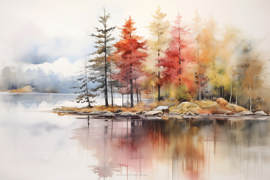 Stellen Sie sich vor, Sie betreten ein gemütliches Zimmer und da ist es – das “Leinwanddruck Aquarell von Bäumen und Felsen an einem See”. Dieses Kunstwerk fängt eine ruhige Seeszene ein, gemalt in weichen Aquarellfarben, die in Rot-, Gelb- und Grüntönen tanzen. Es ist, als hätte sich die Natur selbst ins Haus geholt! Jeder Blick fühlt sich wie ein frischer Wind an und weckt Erinnerungen an friedliche Wanderungen oder faule Nachmittage am Wasser. Perfekt für ein Wohnzimmer oder eine Leseecke, erinnert es uns daran, innezuhalten, durchzuatmen und die Schönheit um uns herum in uns aufzusaugen. Wer wünscht sich nicht ein Stückchen Natur, um den Tag zu verschönern?