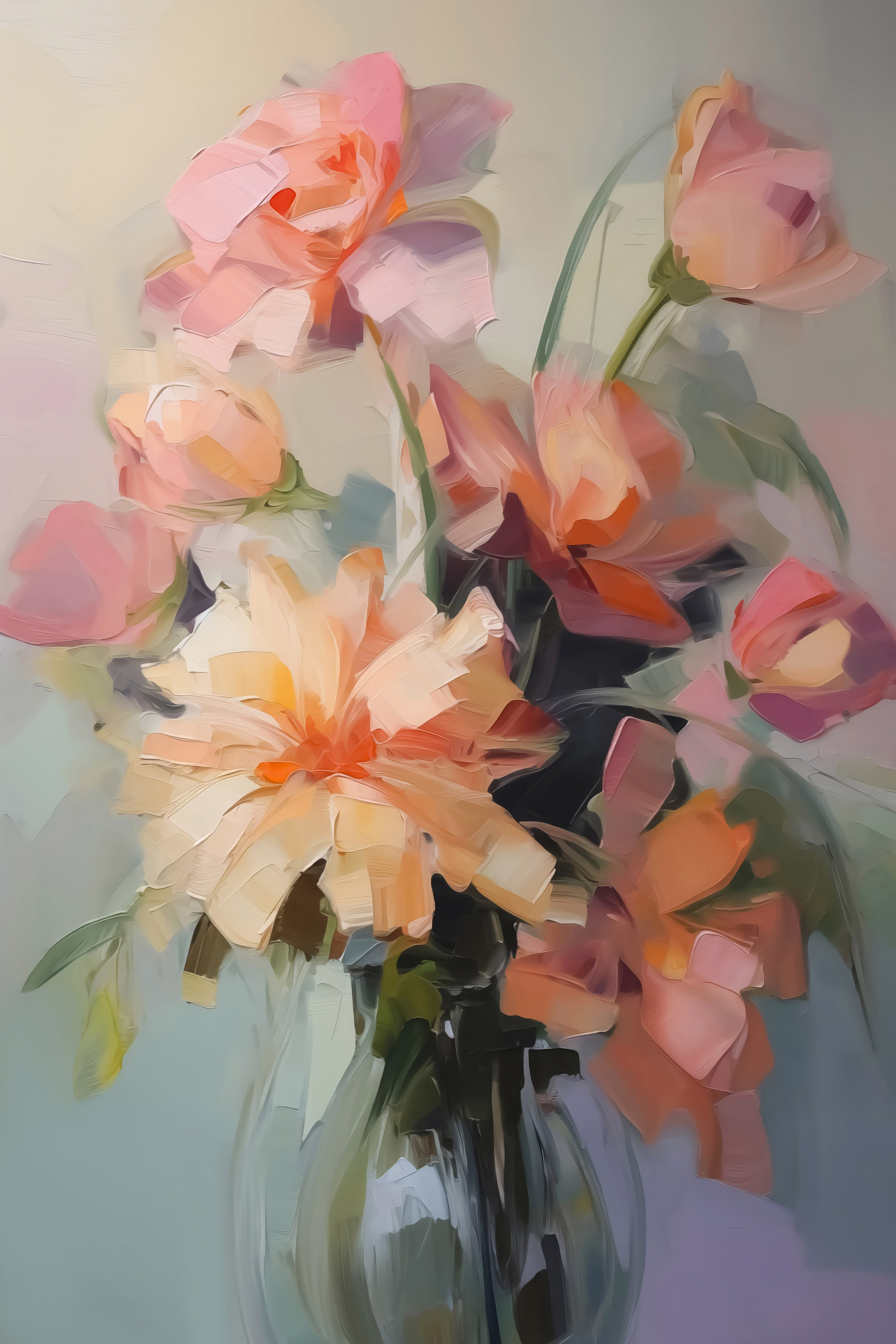 Verschönern Sie jeden Raum mit diesem atemberaubenden Leinwandbild von Blumen in einer Vase. Es ist, als ob man sich einen kleinen Garten ins Haus holt, ohne Schmutz und Viecher – nur reine, farbenfrohe Schönheit, die nicht verwelkt! Stellen Sie sich vor, Sie wachen jeden Morgen mit dieser fröhlichen Blütenpracht auf. Sie eignet sich perfekt, um eine gemütliche Ecke zu schaffen oder sogar als Gesprächsanlass beim Kaffee mit Freunden. Jeder Farbtupfer in Rosa und zartem Orange tanzt auf reizvolle Art und Weise und erinnert an sonnige Tage und sanfte Brisen. Perfekt für Blumenliebhaber oder alle, die einen Hauch von Freude in ihrer Einrichtung brauchen. Wer würde da nicht lächeln?