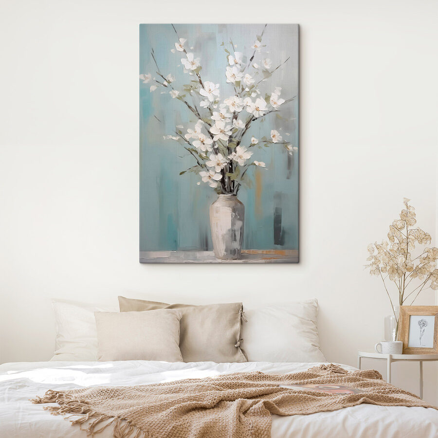 Dieser hübsche Leinwanddruck mit einer bezaubernden Vase, die mit zarten weißen Blumen gefüllt ist, bringt frischen Wind in jeden Raum. Es ist wie ein Hauch von frischer Luft in Form eines Kunstwerks. Der beruhigende blaue Hintergrund lässt die Blüten besonders gut zur Geltung kommen und bietet eine ruhige Atmosphäre, die jeden im Raum zum Innehalten und Durchatmen einlädt. Stellen Sie sich vor, Sie betreten Ihr Wohnzimmer und haben das Gefühl, einen ruhigen Garten zu betreten – ohne lästige Pollen! Dieser Druck ist nicht nur Dekoration, sondern auch eine sanfte Erinnerung daran, die Schönheit des Alltags zu genießen. Perfekt für gemütliche Ecken oder als Statement, das zu Gesprächen anregt. Verwandeln Sie Ihre Wände in eine Leinwand der Freude!