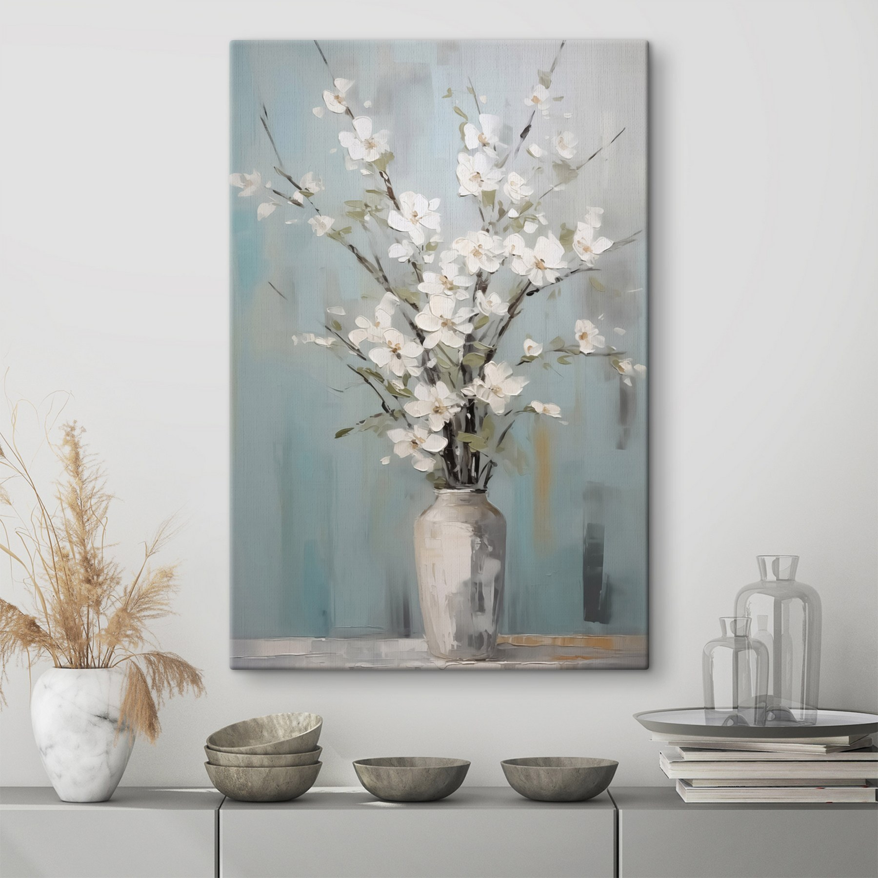 Dieser hübsche Leinwanddruck mit einer bezaubernden Vase, die mit zarten weißen Blumen gefüllt ist, bringt frischen Wind in jeden Raum. Es ist wie ein Hauch von frischer Luft in Form eines Kunstwerks. Der beruhigende blaue Hintergrund lässt die Blüten besonders gut zur Geltung kommen und bietet eine ruhige Atmosphäre, die jeden im Raum zum Innehalten und Durchatmen einlädt. Stellen Sie sich vor, Sie betreten Ihr Wohnzimmer und haben das Gefühl, einen ruhigen Garten zu betreten – ohne lästige Pollen! Dieser Druck ist nicht nur Dekoration, sondern auch eine sanfte Erinnerung daran, die Schönheit des Alltags zu genießen. Perfekt für gemütliche Ecken oder als Statement, das zu Gesprächen anregt. Verwandeln Sie Ihre Wände in eine Leinwand der Freude!