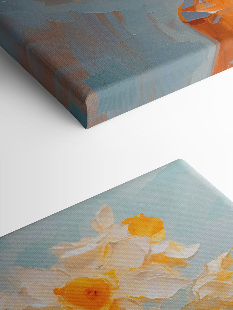 Verschönern Sie jeden Raum mit diesem entzückenden Leinwanddruck “Gelbe und weiße Blumen in einer Vase”. Stellen Sie sich vor, Sie betreten einen Raum, in dem die sanften Farben der frischen Blüten ein Lächeln auf Ihr Gesicht zaubern – wie ein sonniger Tag, der auf einer Leinwand festgehalten wurde. Der fröhliche Sonnenschein und die zarten Blütenblätter scheinen von den kommenden wärmeren Tagen zu erzählen. Es eignet sich perfekt für eine gemütliche Sitzecke, vielleicht zusammen mit einer dampfenden Tasse Kaffee oder einer Wochenendlektüre, die einen völlig in Anspruch nimmt. Im Ernst, es ist die Art von Kunst, die Komplimente macht und zu Gesprächen anregt. Ohne die Pollen, versteht sich!