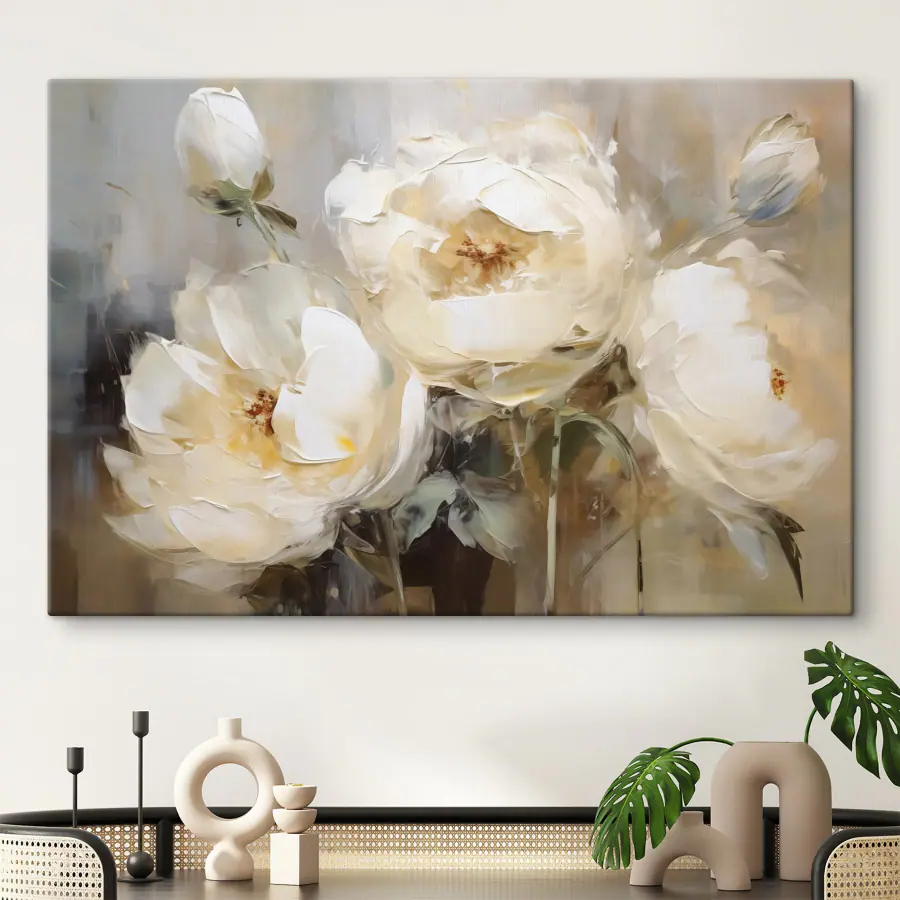Bringen Sie einen Hauch von frischer Luft in Ihren Raum mit diesem atemberaubenden Leinwanddruck mit weißen Blumen. Es ist, als hätte man einen kleinen blühenden Garten direkt an der Wand, nur ohne Gießkanne und lästige Käfer. Stellen Sie sich vor, wie Sie morgens an Ihrem Kaffee nippen und dabei die zarten Blütenblätter betrachten, die die Geheimnisse des Frühlings zu flüstern scheinen. Dieses Stück fügt sich mühelos in jede Einrichtung ein, sei sie nun modern, rustikal oder irgendetwas dazwischen. Es ist fast so, als würden die Blumen Sie dazu einladen, innezuhalten, durchzuatmen und die einfachen Freuden des Lebens zu genießen. Perfekt für eine gemütliche Sitzecke oder ein lebhaftes Wohnzimmer, verleiht dieser Druck Wärme und Charakter, der sich einfach… richtig anfühlt. Wer wünscht sich nicht einen Hauch der Eleganz der Natur in seinem Zuhause?
