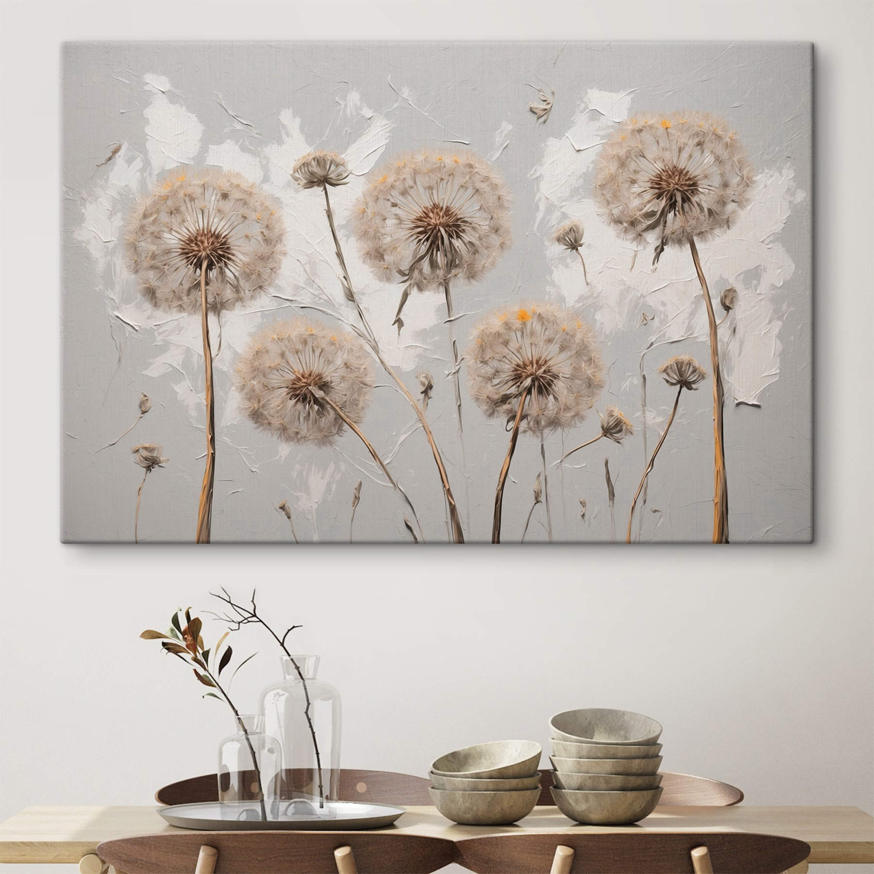 Bringen Sie mit diesem bezaubernden Leinwanddruck von Löwenzahnblüten, die vor einem sanften weißen Hintergrund tanzen, einen Hauch von Natur in Ihr Zuhause. Es ist, als würde man eine Momentaufnahme einer sanften Brise einfangen, in der die flauschigen Samen bereit sind, sich in die Lüfte zu erheben. Stellen Sie sich vor, wie dieses Kunstwerk eine gemütliche Ecke aufhellen würde, vielleicht über einer Leseecke oder in einem sonnigen Flur. Jeder Blick darauf zaubert Ihnen ein Lächeln ins Gesicht und erinnert Sie an unbeschwerte Kindheitsmomente – wer hat nicht schon einmal einen Wunsch auf einen Löwenzahn geäußert? Dieses Kunstwerk ist nicht nur hübsch, es flüstert jedem, der innehält, um es zu bewundern, Geschichten voller Wunder und Freude zu. Eine perfekte Möglichkeit, jedem Raum einen Hauch von Fantasie und Wärme zu verleihen!