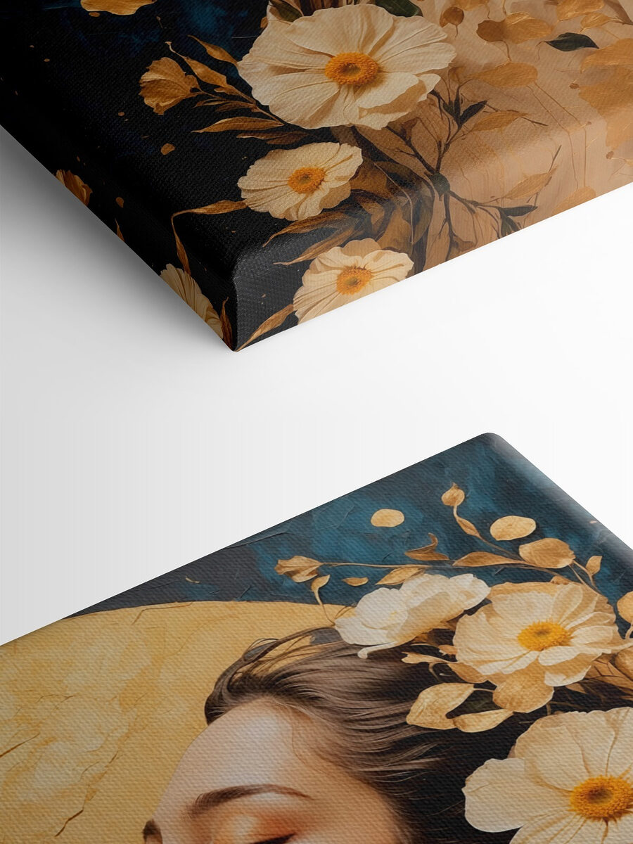 Verleihen Sie Ihrem Raum einen Hauch von Zauber mit dem Leinwanddruck „Frau mit Blumen im Haar“. Dieses Werk ist wie ein sanftes Flüstern der Natur und verbindet die Schönheit zarter Blumen mit einer traumhaften Figur. Stellen Sie sich vor, Sie betreten einen Raum und werden von diesem Kunstwerk begrüßt – es ist mit Sicherheit ein guter Gesprächsaufhänger. Die sanften Farbtöne und kunstvollen Blüten strahlen Wärme aus und wecken Gedanken an sonnige Nachmittage und unbeschwerte Tage. Perfekt, um eine gemütliche Ecke oder Ihren Lieblingslesebereich aufzuhellen, ist es Kunst, die sich wie ein Freund anfühlt, immer einladend und niemals wertend. Genau die richtige Stimmung, um Ihre Stimmung zu heben!