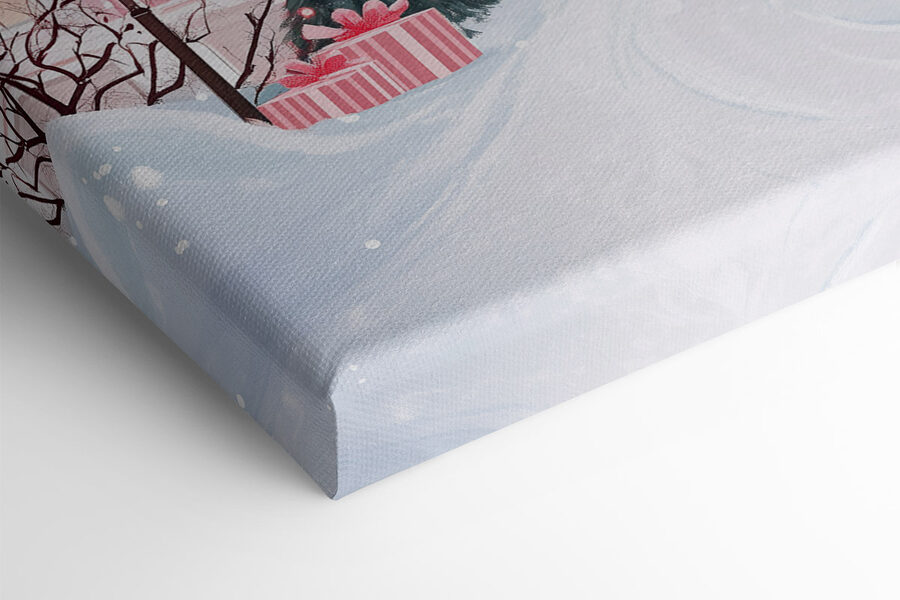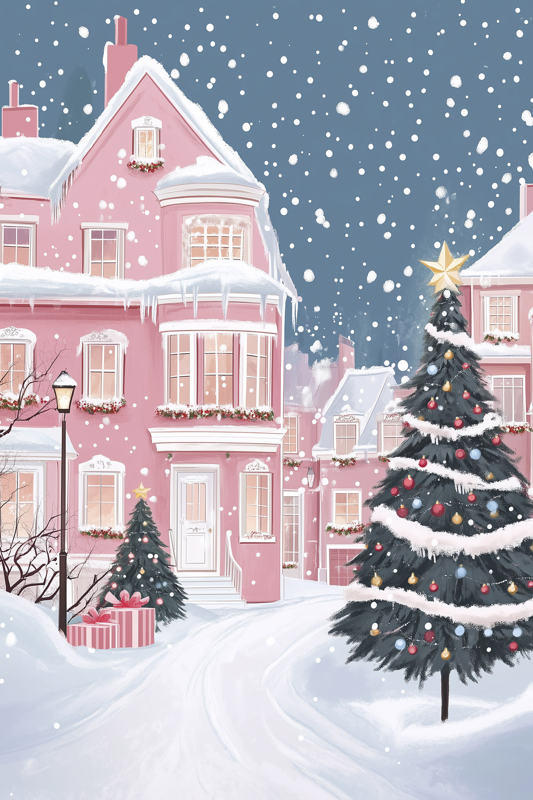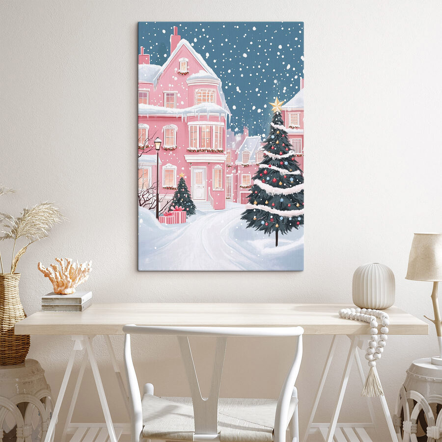 Tauchen Sie mit diesem bezaubernden Leinwanddruck in ein Winterwunderland ein! Stellen Sie sich ein gemütliches rosa Haus vor, das mit flauschigem Schnee bedeckt ist und stolz vor dem Hintergrund eines sanften Schneefalls steht. Der leuchtende Weihnachtsbaum funkelt mit bunten Ornamenten und lädt zu einem Lächeln und guter Laune ein. Jeder Blick auf diese Szene weckt vielleicht Kindheitserinnerungen an die Magie der Feiertage – wie den Duft von frisch gebackenen Plätzchen, der durch die Luft schwebt, oder das Lachen der Lieben um Sie herum. Perfekt, um jeden Raum aufzuhellen, fängt er den Geist der Jahreszeit auf eine Weise ein, die Freunde sagen lässt: „Das brauche ich in meinem Leben!“ Verleihen Sie Ihrem Raum einen Hauch von Freude und lassen Sie die Festlichkeiten beginnen!