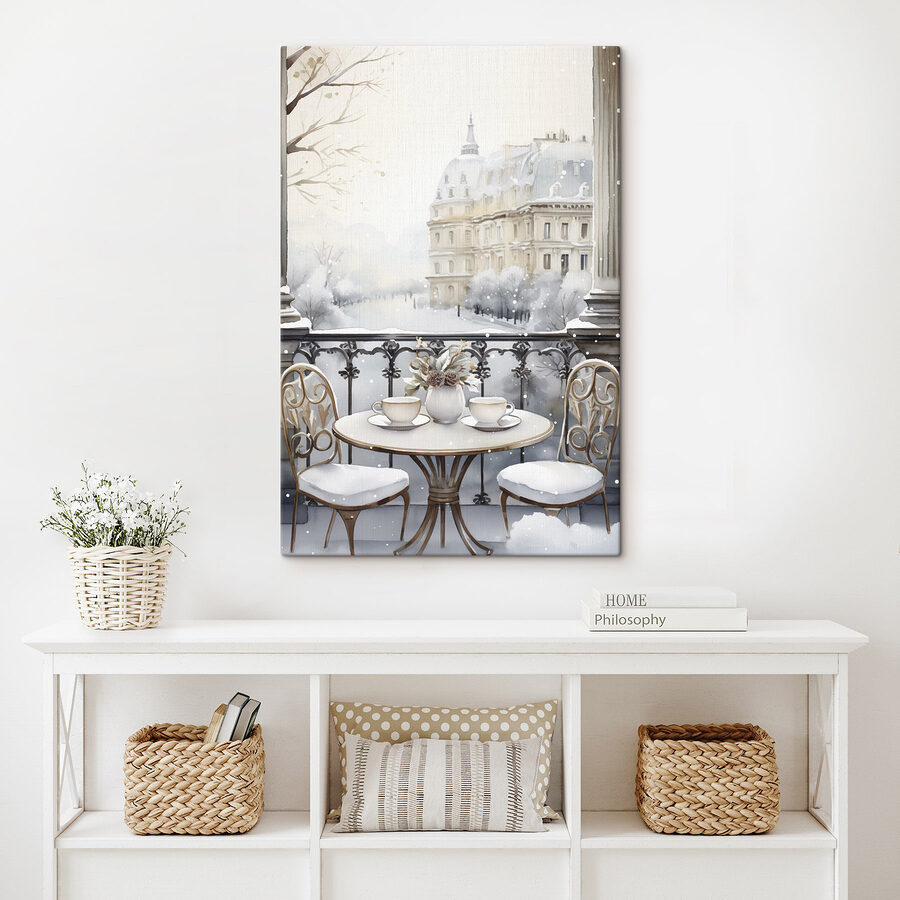 Verwandeln Sie Ihren Raum mit diesem bezaubernden Leinwanddruck, der einen gemütlichen Tisch mit dampfenden Tassen und einer charmanten Blumenvase vor einer traumhaften verschneiten Kulisse zeigt. Stellen Sie sich vor: ein ruhiger Wintermorgen, draußen tanzen Schneeflocken, während Sie Ihr Lieblingsgetränk genießen – dieser Druck fängt diesen glückseligen Moment perfekt ein. Die sanften Farben und die ruhige Atmosphäre laden zum Entspannen ein und machen ihn zu einer perfekten Ergänzung für jeden Raum. Ob im Wohnzimmer oder in einer gemütlichen Leseecke, dieses Werk verleiht Wärme und Charme, wie eine freundliche Umarmung an einem kalten Tag. Es ist nicht nur Kunst, es ist ein Erlebnis!