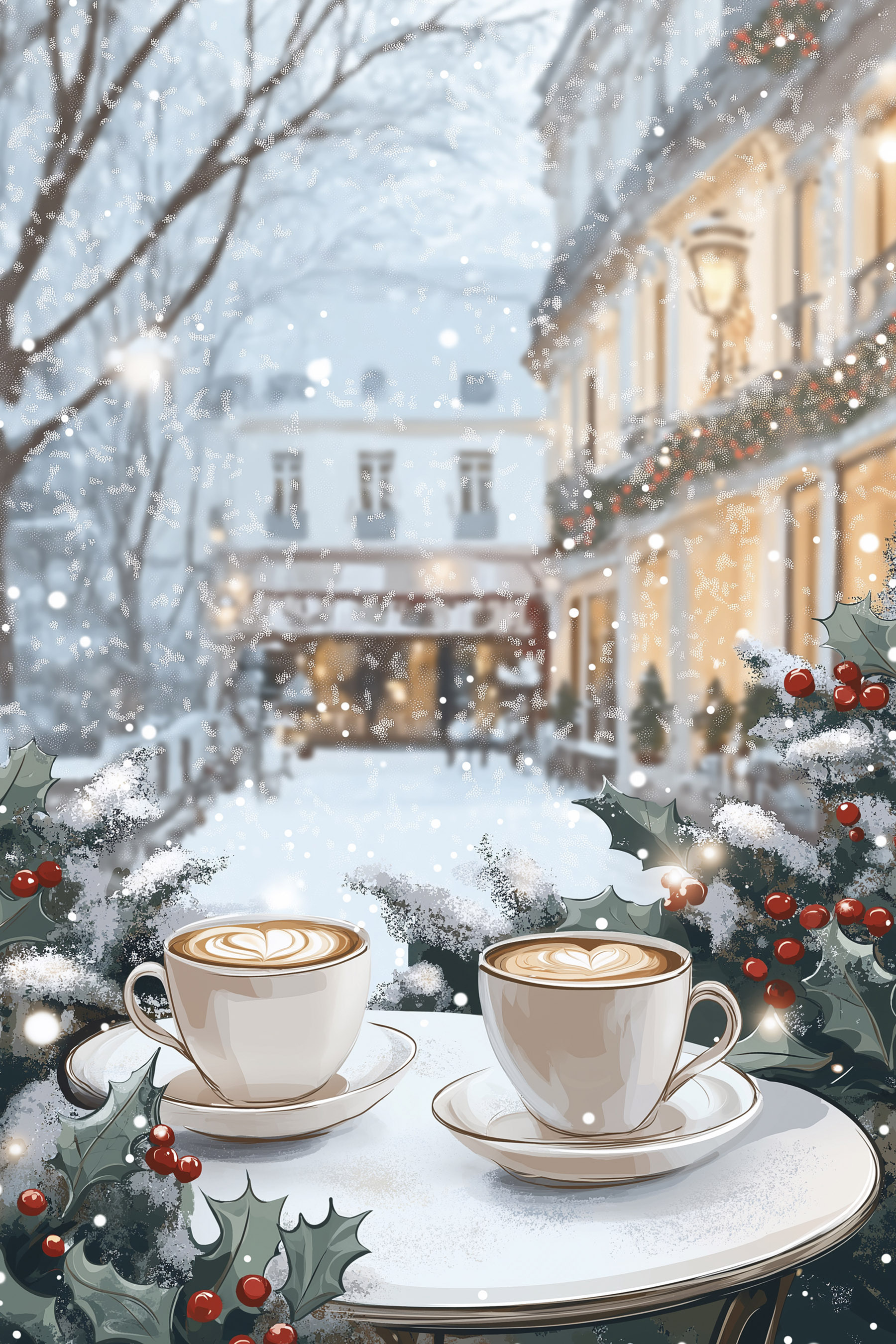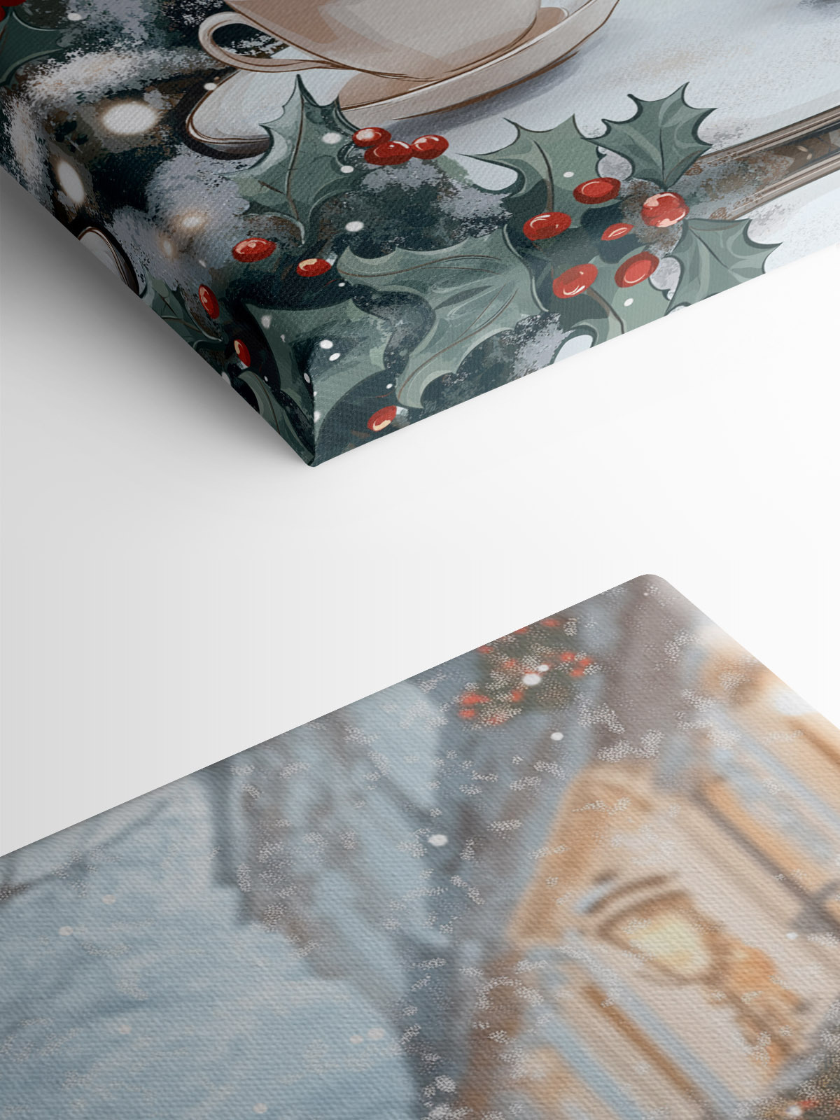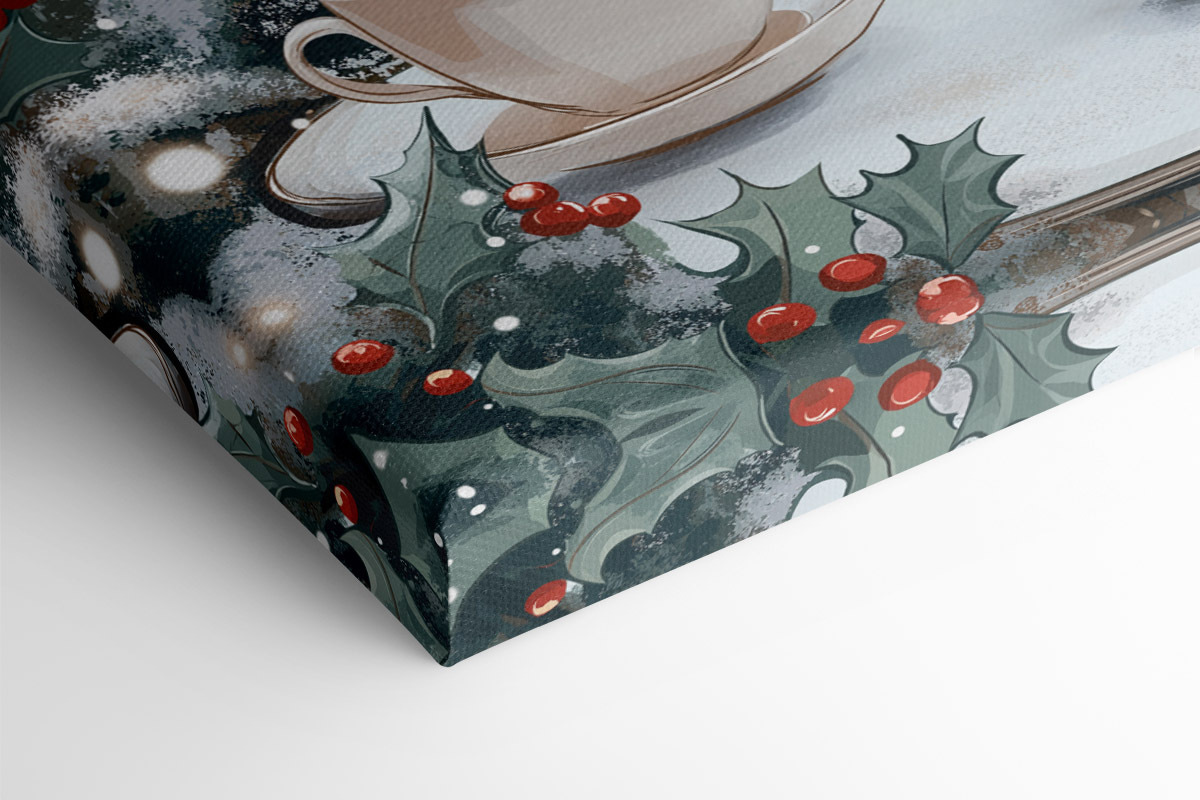 Verleihen Sie jedem Raum eine gemütliche Atmosphäre mit diesem charmanten Leinwanddruck, der zwei Tassen Kaffee auf einem Tisch zeigt, umrahmt von einer verschneiten Straße. Es ist wie eine Szene aus einem Weihnachtsfilm, die Sie dazu einlädt, sich das leise Geräusch von fallendem Schnee und den köstlichen Duft von frischem Kaffee in der Luft vorzustellen. Stellen Sie sich vor, wie Sie sich in Ihre Lieblingsdecke kuscheln und den ersten Schluck genießen, während die Welt draußen funkelt. Dieser Druck ist perfekt für alle, die einen Hauch von Wärme in ihrer Einrichtung lieben. Er fängt einen Moment einfacher Freude ein und ist eine reizvolle Ergänzung für jedes Zuhause. Es ist Kunst, die nicht nur das Auge erfreut, sondern auch das Herz berührt. Perfekt für Kaffeeliebhaber oder alle, die eine winterliche Auszeit brauchen.