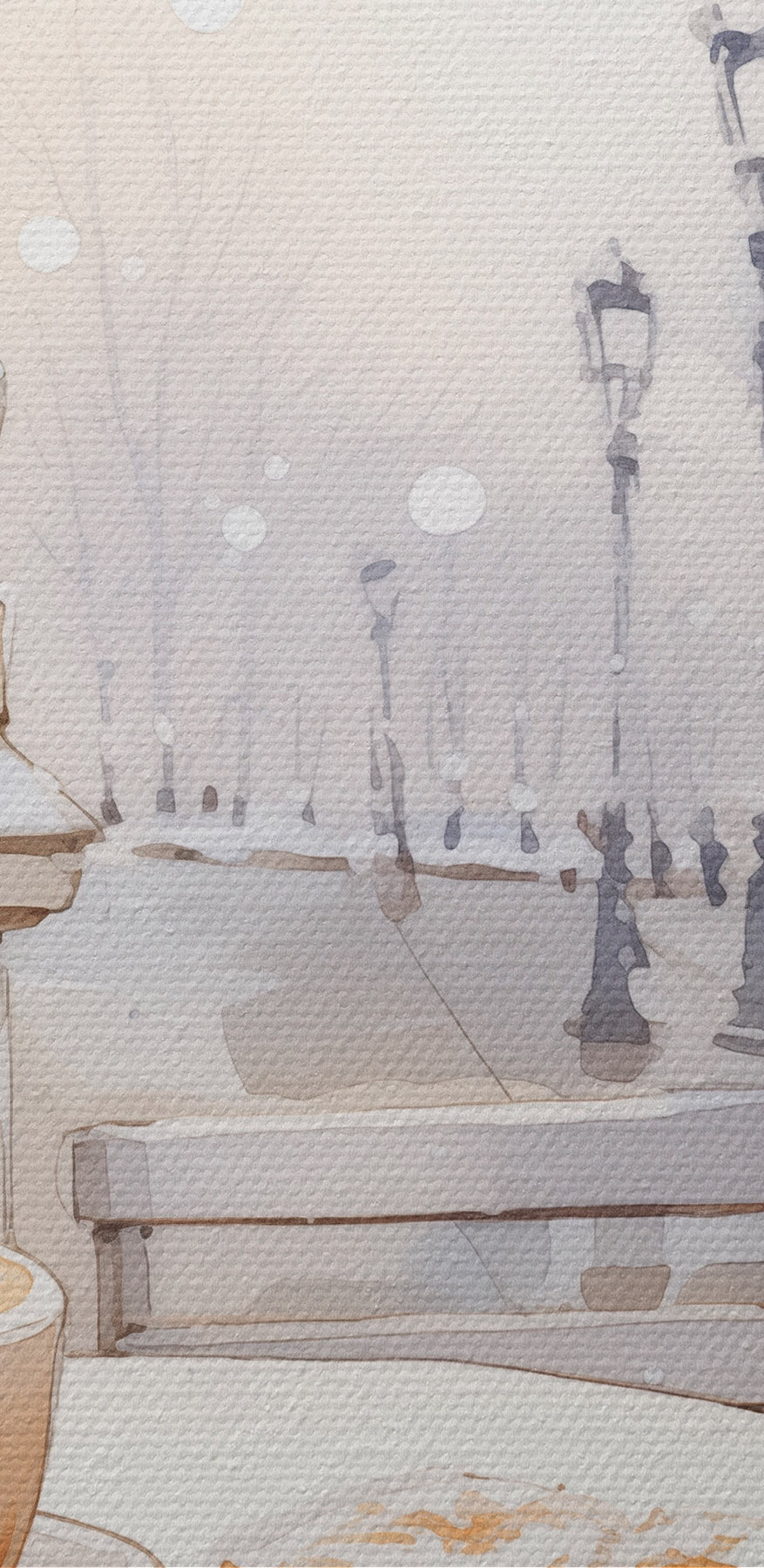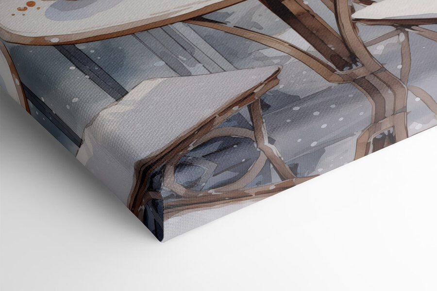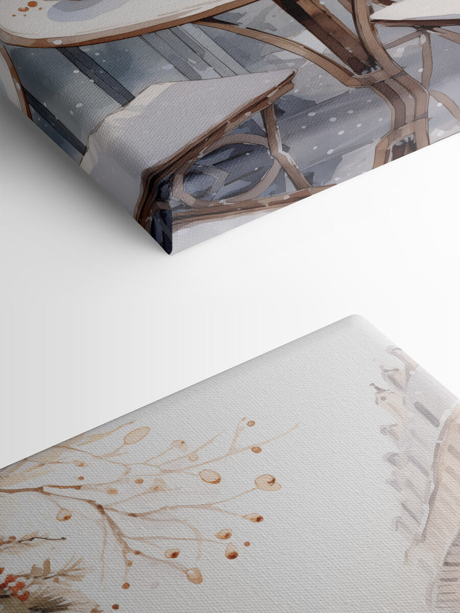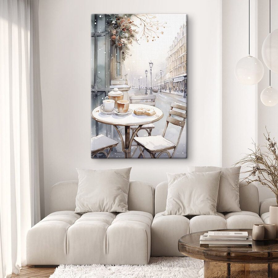 Stellen Sie sich vor, Sie schlürfen Ihren Morgenkaffee in einem gemütlichen Café, während draußen sanft der Schnee fällt und flockige Croissants auf dem Tisch locken. Dieser Leinwanddruck fängt genau diesen Moment ein – perfekt für alle, die gutes Essen und warme Momente zu schätzen wissen. Es ist wie ein kleines Fenster zu einer Winterszene, die zu Tagträumen und gemütlichen Momenten einlädt. Hängen Sie es in der Küche auf, und es ist fast so, als würde der Duft von frischem Gebäck den Raum erfüllen und jeden Morgen zu etwas Besonderem machen. Es ist nicht nur Kunst, sondern ein Erlebnis, das Ihren Raum erhellt und Ihre Geschmacksknospen zum Kribbeln bringt.