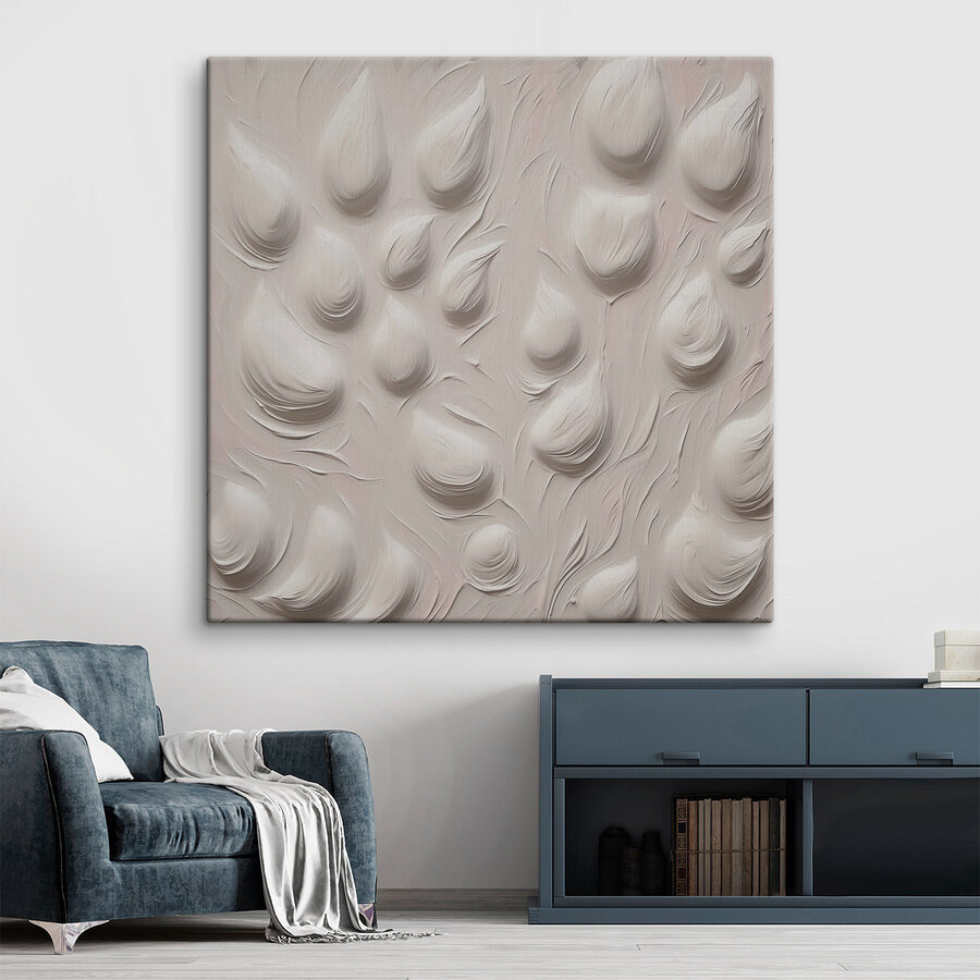 Stellen Sie sich vor, Sie betreten einen Raum und werden von einem atemberaubenden Wandbild begrüßt, das aussieht, als hätte es gerade einen Frühlingsregen abbekommen – die zarten Tropfen scheinen Sie geradezu einzuladen, hereinzukommen. Diese Leinwand mit ihrer weichen Textur und dem beruhigenden weißen Hintergrund schafft eine Atmosphäre, die sowohl beruhigend als auch schick ist. Es ist, als würde man an einer warmen Tasse Tee nippen und dabei den Blütenblättern zusehen, wie sie im Wind tanzen. Dieses Werk ist perfekt, um einen Raum frisch und luftig wirken zu lassen, und strahlt Eleganz aus, ohne um Aufmerksamkeit zu buhlen. Hängen Sie es auf, lehnen Sie sich zurück und lassen Sie sich von den sanften Kurven in einen friedlichen Moment entführen. Ihre Wände werden es Ihnen danken!