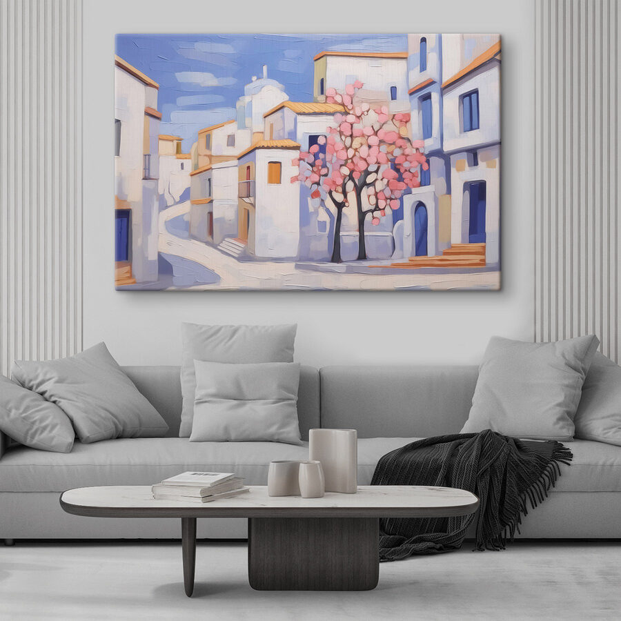 Verwandeln Sie jeden Raum mit diesem bezaubernden Leinwanddruck, der einen Baum vor einem malerischen Gebäude zeigt. Er ist wie ein kleines Stück Natur, das Ihren Wänden Wärme verleiht – perfekt für alle, die davon träumen, durch malerische Straßen zu schlendern. Die zartrosa Blüten heben sich deutlich von den kühlen Blautönen und warmen Weißtönen ab und zaubern Ihnen ein Lächeln ins Gesicht. Stellen Sie sich vor, Sie trinken in der Nähe einen Kaffee und genießen die Schönheit und Ruhe. Ob im Wohnzimmer, im Flur oder in einer gemütlichen Ecke – dieses Kunstwerk bringt ein wenig Ruhe und Fantasie in den Alltag. Das ist doch mal ein echter Stimmungsaufheller!