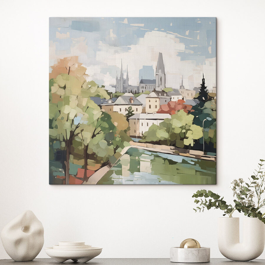 Verwandeln Sie eine leere Wand in einen gemütlichen Rückzugsort mit diesem bezaubernden Leinwanddruck einer Stadtlandschaft mit Bäumen und einem glitzernden Fluss. Stellen Sie sich vor, Sie hängen ihn in Ihrem Wohnzimmer oder Arbeitszimmer auf – plötzlich wirkt dieser langweilige Raum wie ein kleiner Rückzugsort. Die sanfte Farbpalette sorgt für eine ruhige Atmosphäre, perfekt zum Entspannen nach einem langen Tag oder um während der Kaffeepause Freude zu wecken, wenn Sie ihn betrachten und in Tagträumen versinken. Es ist, als hätte man ein Fenster zu einer anderen Welt, in der jeder Blick eine neue Geschichte einlädt. Vertrauen Sie darauf, dass er Ihrer Einrichtung einen Hauch von entspannter Eleganz verleiht – wer hätte gedacht, dass Wände so einladend sein können?