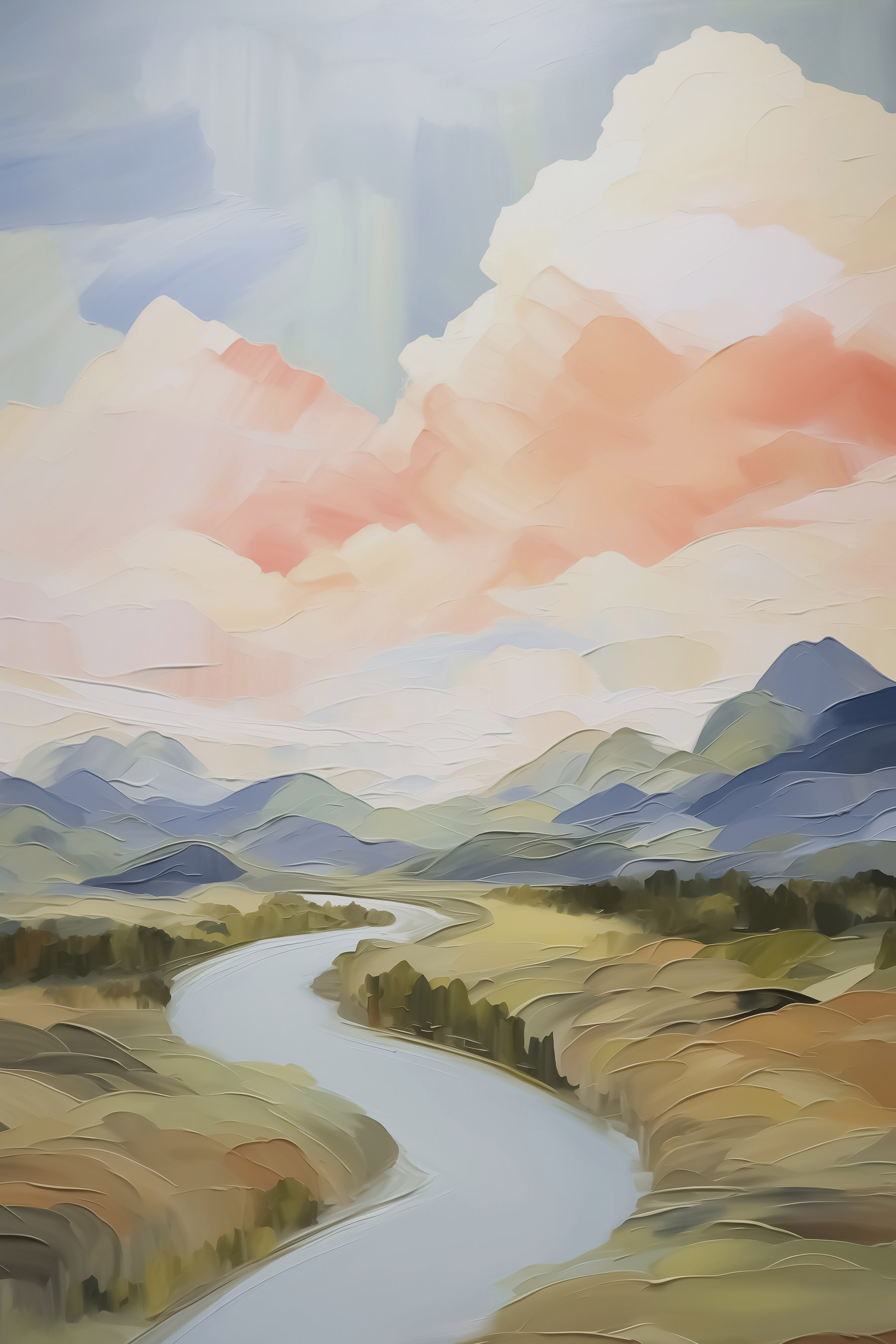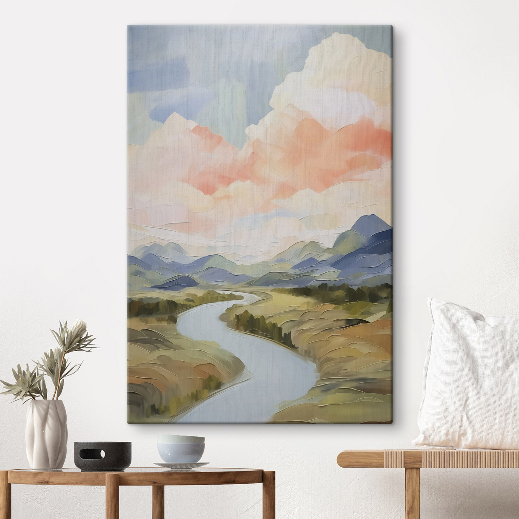 Verwandeln Sie Ihren Raum mit „Leinwanddruck Fluss, der durch ein Tal fließt“. Dieses Werk fängt den ruhigen Fluss der Natur ein, wo der Fluss mühelos durch üppige Täler gleitet. Stellen Sie sich vor, Sie lehnen sich mit einer warmen Tasse Kaffee zurück, genießen die sanften Blau- und Erdtöne und lassen sich von den sanften Kurven des Flusses in einen friedlichen Nachmittag entführen.