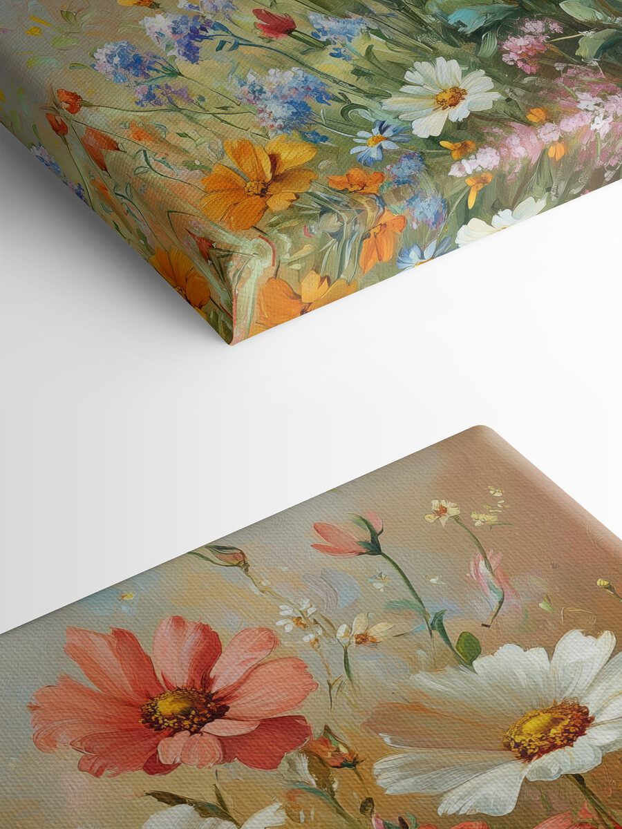 Verschönern Sie jeden Raum mit diesem entzückenden Leinwanddruck, der eine atemberaubende Blumenpracht zeigt, die auf einem sonnenverwöhnten Feld tanzt. Stellen Sie sich vor, Sie betreten einen warmen Frühlingstag, an dem eine sanfte Brise den süßen Duft der Blüten mit sich trägt. Die leuchtenden Farben – Rosa, Gelb und Weiß – bringen Freude an Ihre Wände und wecken das gemütliche Gefühl eines Picknicks im Garten. Er eignet sich perfekt für ein Wohnzimmer, in dem sich Freunde treffen, oder ein ruhiges Schlafzimmer und verwandelt jede langweilige Ecke in ein florales Meisterwerk. Hängen Sie ihn auf und beobachten Sie, wie er die Stimmung hebt – genau wie eine gute Tasse Kaffee am Montagmorgen!