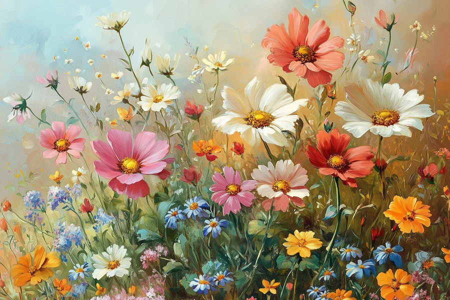 Brighten up any space with this delightful canvas print featuring a stunning array of flowers dancing in a sun-kissed field. Imagine stepping into a warm, spring day, where the gentle breeze carries the sweet fragrance of blooms. The vibrant colors—pinks, yellows, and whites—bring a splash of joy to your walls, sparking that cozy feeling of a garden picnic. It’s perfect for a living room, where friends gather, or a serene bedroom, turning any dull corner into a floral masterpiece. Hang it up and watch how it lifts spirits—just like a good cup of coffee on a Monday morning!