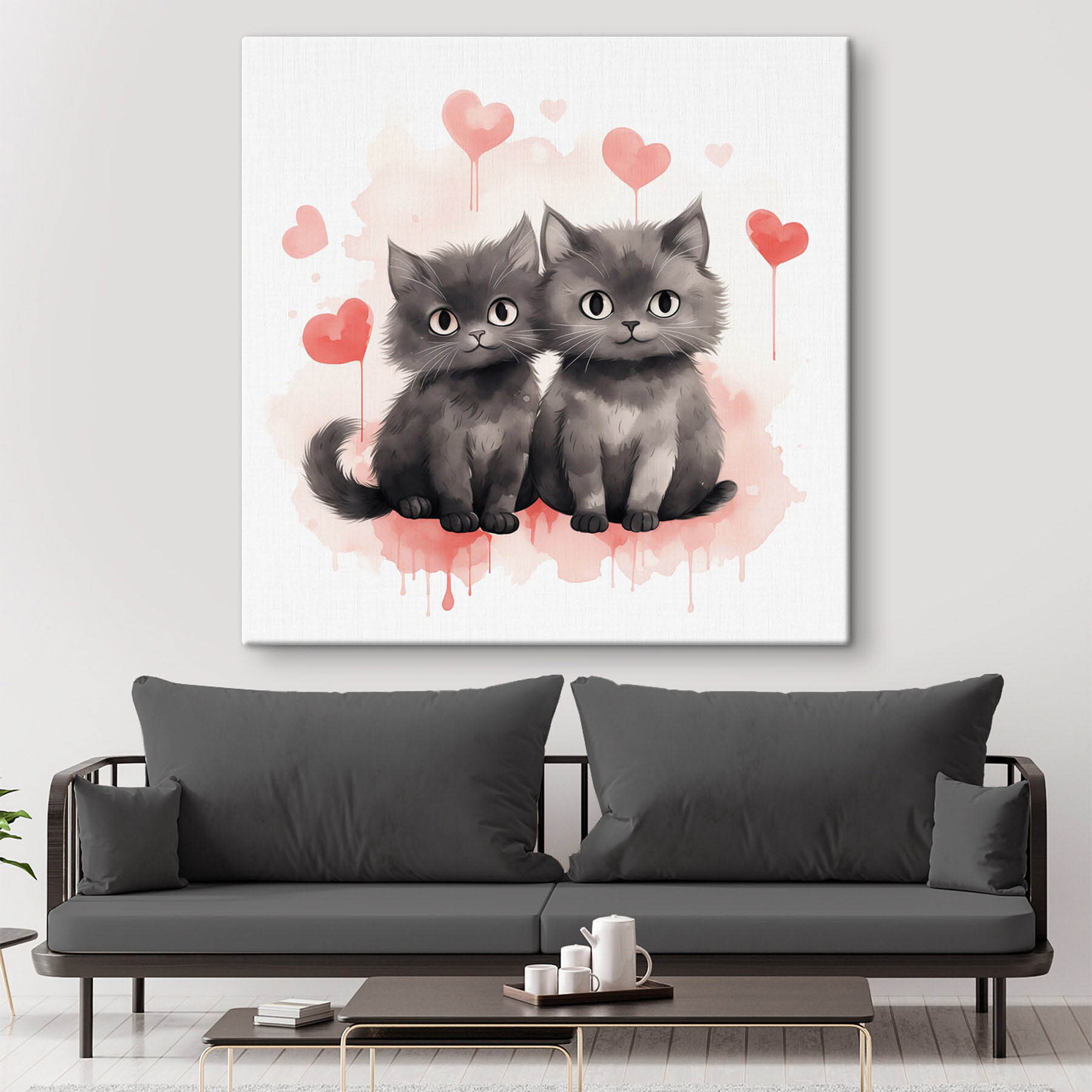 Verleihen Sie jeder Wand einen Hauch von Verspieltheit mit den bezaubernden „Leinwanddrucken Zwei Katzen sitzen nebeneinander“. Diese entzückenden Fellknäuel, die gemütlich inmitten zartrosa Herzen sitzen, bringen sofortige Wärme in den Raum. Stellen Sie sich vor, Sie gehen vorbei und treffen auf ihre süßen, neugierigen Augen – es ist, als würden sie sagen: „Hallo! Liebe liegt in der Luft, oder?“ Diese Drucke eignen sich perfekt für gemütliche Wohnzimmer oder Ecken mit Katzenmotiven und verbreiten eine herzerwärmende Atmosphäre. Jeder Blick kann ein wenig Freude auslösen und jeden Raum zu etwas Besonderem machen. Wer würde nicht gerne täglich eine Portion Katzenfreundschaft genießen?