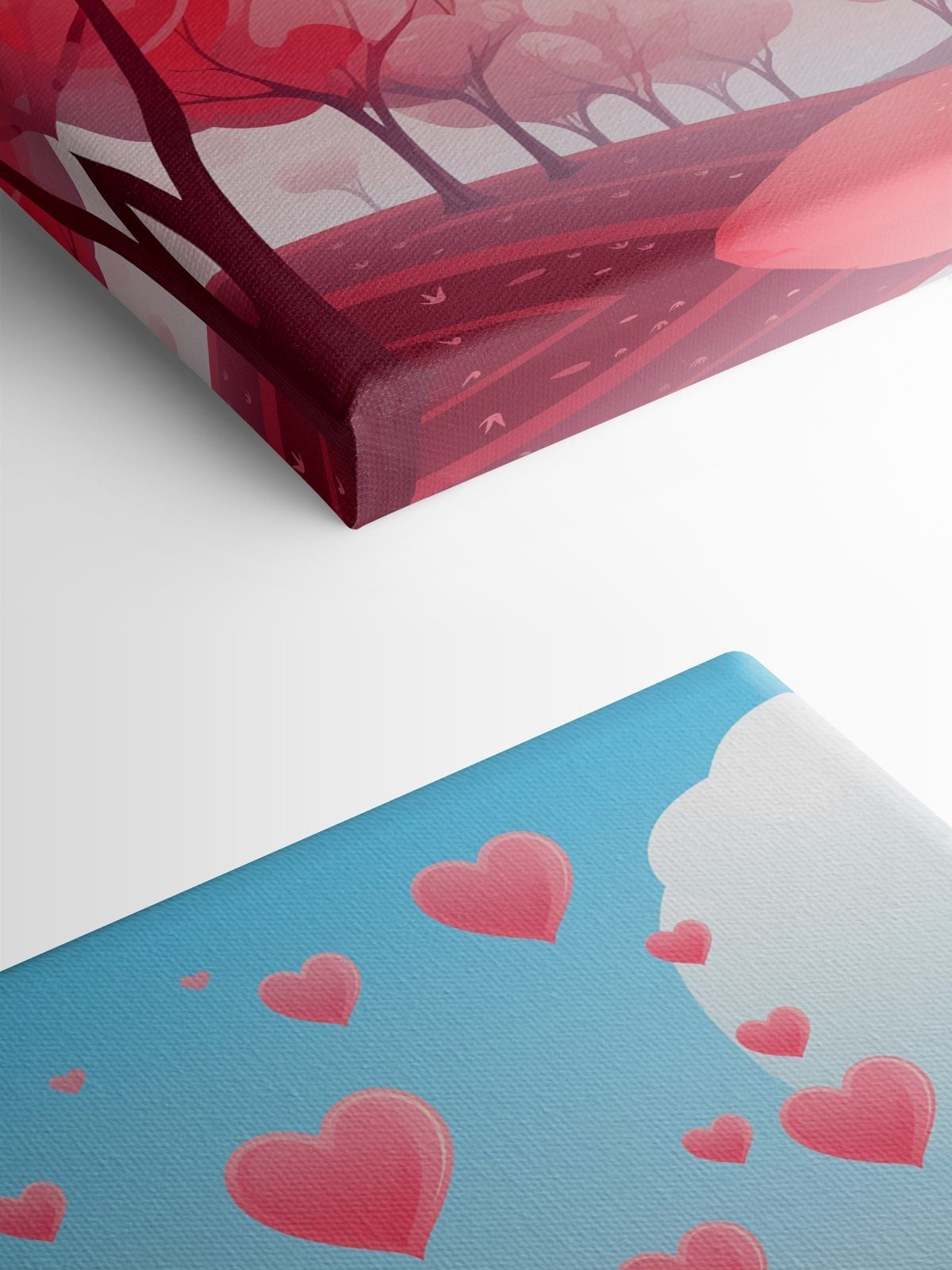 Treten Sie ein in eine fantasievolle Welt mit diesem „Leinwanddruck mit rosa Bäumen und Herzen, die durch den Himmel fliegen“. Es ist wie ein Märchen, das zum Leben erwacht! Stellen Sie sich vor, wie sich rosa Bäume sanft im Wind wiegen, während kleine Herzen durch einen traumhaften blauen Himmel schweben. Perfekt, um jeder Wand einen Hauch von Liebe zu verleihen.