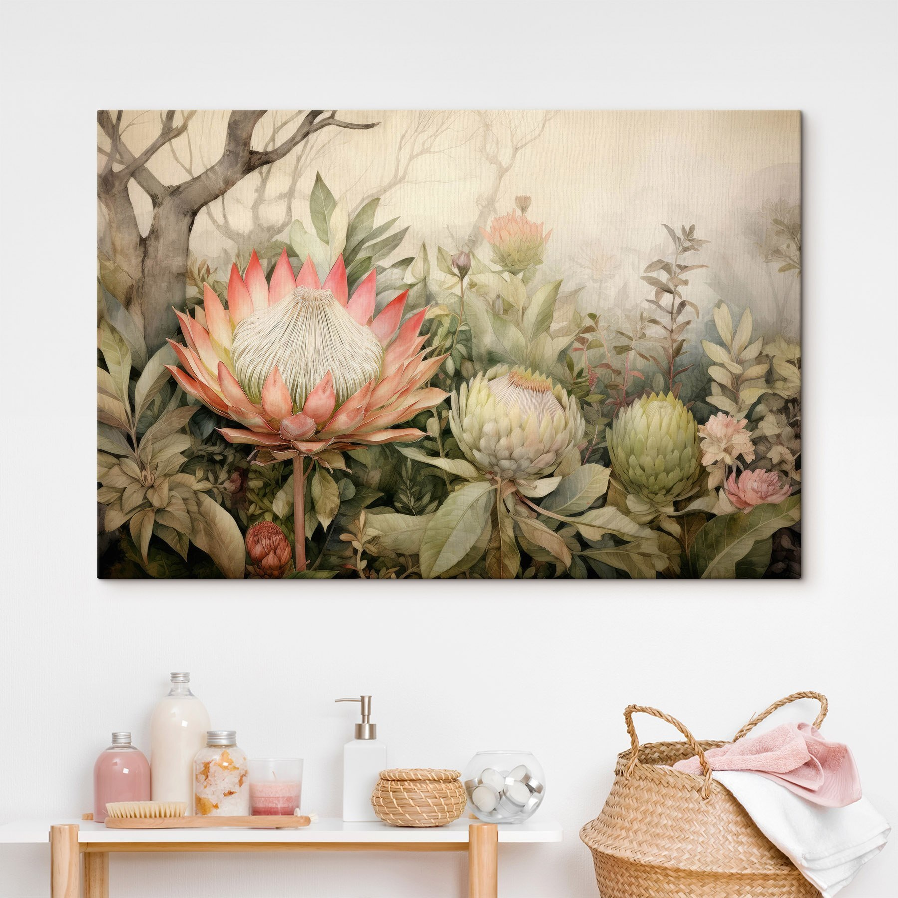 Verwandeln Sie Ihren Raum in eine Oase der Ruhe mit diesem bezaubernden Leinwanddruck mit Blumen und Blättern. Stellen Sie sich für einen Moment vor, Sie betreten einen Raum, der sich wie ein blühender Wald anfühlt. Diese exquisiten Blüten und das üppige Grün scheinen Geheimnisse aus der Natur zu flüstern. Jedes Blütenblatt erzählt eine Geschichte, und diese Farben? Sie werden Ihren Tag erhellen wie eine warme Tasse Kaffee an einem kühlen Morgen. Dieses Werk ist mehr als nur Wandkunst, es ist eine Einladung zum Durchatmen, Entspannen und vielleicht sogar zum Tagträumen. Stellen Sie sich vor, Sie machen es sich mit einem Buch gemütlich und genießen die sanfte Atmosphäre. Es passt perfekt in jede Ecke Ihres Zuhauses und wird Ihre Gäste zum Staunen bringen. Eine bezaubernde Mischung aus Eleganz und Ruhe erwartet Sie!